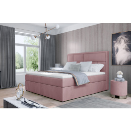 Meron je vkusná, elegantní, dokonale měkká a pohodlná kontinentální postel typu boxspring v moderním klasickém stylu, která je k dispozici ve třech velikostech: 140/160/180 x 200 cm. Výjimečné pohodlí je umocněno vysokým 53 centimetrů sedadlem a výplní postele. Bonellová matrace a pěna T25 poskytují uživateli nábytku nejvyšší komfort a dokonale stabilizují polohu těla během odpočinku. Takové řešení zaručuje pohodlný odpočinek pro každého, protože zdravý spánek je přece dobrý spánek! Kromě značného pohodlí stojí za zmínku také zpracování jednotlivých prvků modelu Meron. Vysoká opěrka hlavy, prošívaná do tvaru nepravidelných obdélníků, je nejen měkkou, pohodlnou a neocenitelnou oporou, ale také zajímavou dekorací ložnice. Díky dvěma prostorným úložným boxům na lůžkoviny je naše boxspringová postel nejen funkčním doplňkem bytu, ale také vlastní oázou klidu, což činí používání takové postele skutečným potěšením. Stojí za to mít takovou postel jako Meron ve vašem bytě - spokojenost zaručena.