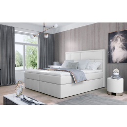 Meron je vkusná, elegantní, dokonale měkká a pohodlná kontinentální postel typu boxspring v moderním klasickém stylu, která je k dispozici ve třech velikostech: 140/160/180 x 200 cm. Výjimečné pohodlí je umocněno vysokým 53 centimetrů sedadlem a výplní postele. Bonellová matrace a pěna T25 poskytují uživateli nábytku nejvyšší komfort a dokonale stabilizují polohu těla během odpočinku. Takové řešení zaručuje pohodlný odpočinek pro každého, protože zdravý spánek je přece dobrý spánek! Kromě značného pohodlí stojí za zmínku také zpracování jednotlivých prvků modelu Meron. Vysoká opěrka hlavy, prošívaná do tvaru nepravidelných obdélníků, je nejen měkkou, pohodlnou a neocenitelnou oporou, ale také zajímavou dekorací ložnice. Díky dvěma prostorným úložným boxům na lůžkoviny je naše boxspringová postel nejen funkčním doplňkem bytu, ale také vlastní oázou klidu, což činí používání takové postele skutečným potěšením. Stojí za to mít takovou postel jako Meron ve vašem bytě - spokojenost zaručena.