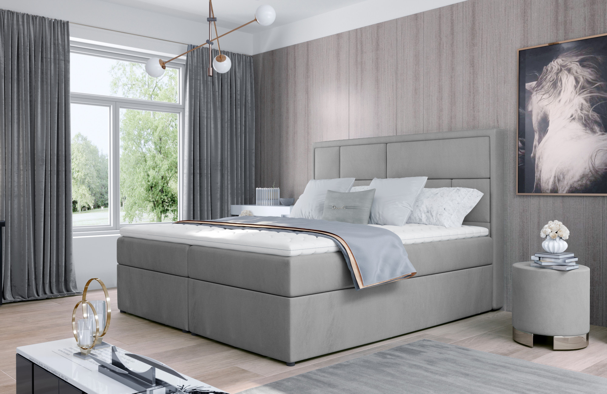Meron je vkusná, elegantní, dokonale měkká a pohodlná kontinentální postel typu boxspring v moderním klasickém stylu, která je k dispozici ve třech velikostech: 140/160/180 x 200 cm. Výjimečné pohodlí je umocněno vysokým 53 centimetrů sedadlem a výplní postele. Bonellová matrace a pěna T25 poskytují uživateli nábytku nejvyšší komfort a dokonale stabilizují polohu těla během odpočinku. Takové řešení zaručuje pohodlný odpočinek pro každého, protože zdravý spánek je přece dobrý spánek! Kromě značného pohodlí stojí za zmínku také zpracování jednotlivých prvků modelu Meron. Vysoká opěrka hlavy, prošívaná do tvaru nepravidelných obdélníků, je nejen měkkou, pohodlnou a neocenitelnou oporou, ale také zajímavou dekorací ložnice. Díky dvěma prostorným úložným boxům na lůžkoviny je naše boxspringová postel nejen funkčním doplňkem bytu, ale také vlastní oázou klidu, což činí používání takové postele skutečným potěšením. Stojí za to mít takovou postel jako Meron ve vašem bytě - spokojenost zaručena.