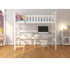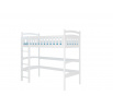 Postel na vyvýšeném patře MIAGO je patrová verze pro jedno dítě. Je to ideální řešení pro malé prostory. Horní část slouží jako pohodlné místo na spaní. Naopak, prostor pod postelí lze využít jako úložný prostor, místo pro práci nebo hraní. Součástí sady je odolný rám vyrobený z březové lamely typu FLEX. Matrace není součástí postele.