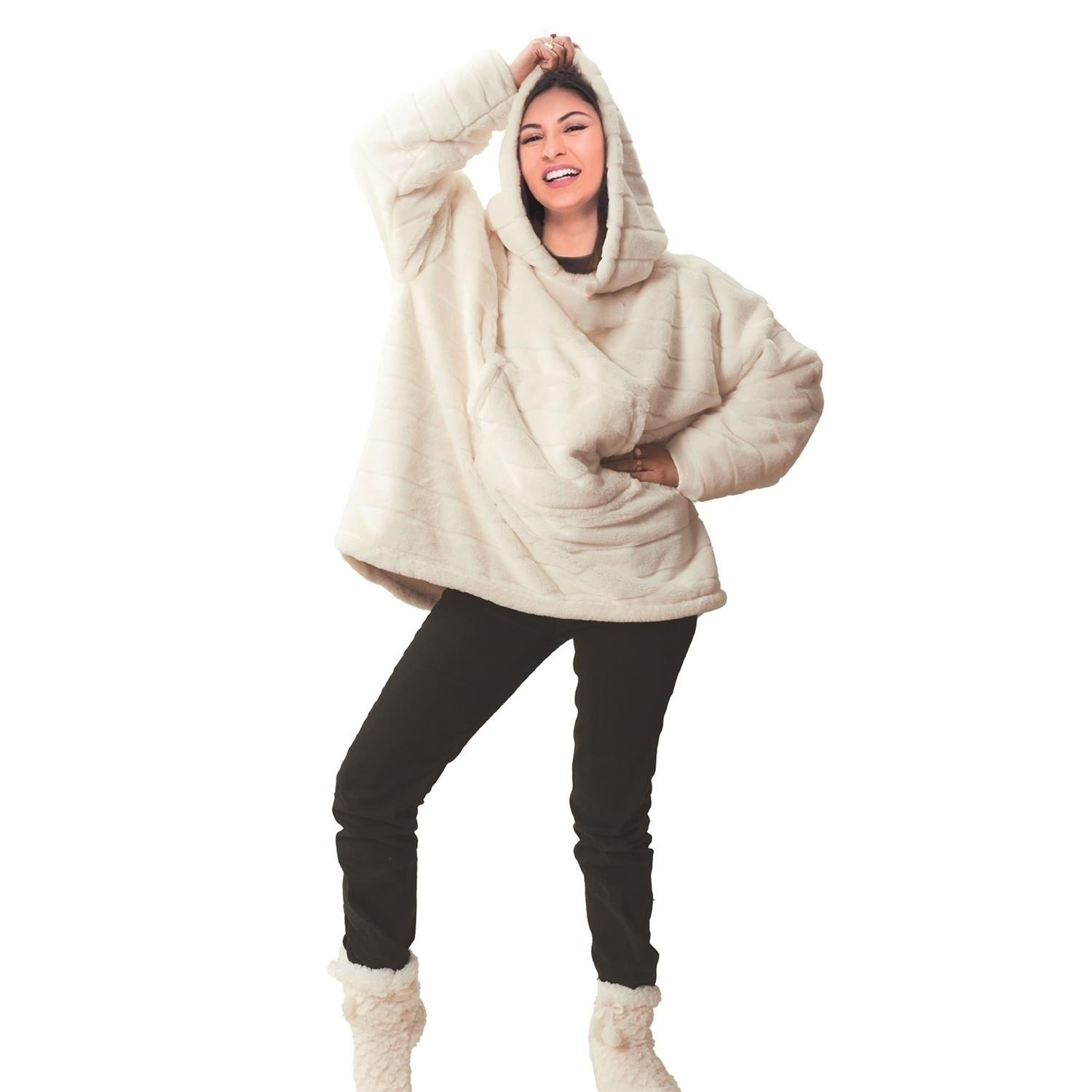 Dlouhá mikina sherpa je ideální pokrývka na dlouhé zimní večery. Mikina snuddie je vybavena kapucí a přední kapsou. Velmi příjemný a teplý na dotek materiál zaručuje dlouhé pohodlné filmové večery. Prát při max teplotě 30 stupňů. Nežehlit. Gramáž tkaniny 320g/m2 tkanina 100% polyester