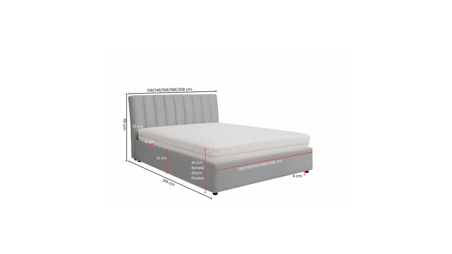 - Čalouněné čelo: Měkké a pohodlné čalouněné čelo postele Milano je ideální pro večerní čtení knihy nebo sledování televize. Poskytuje oporu pro vaše záda a zvyšuje komfort při relaxaci.