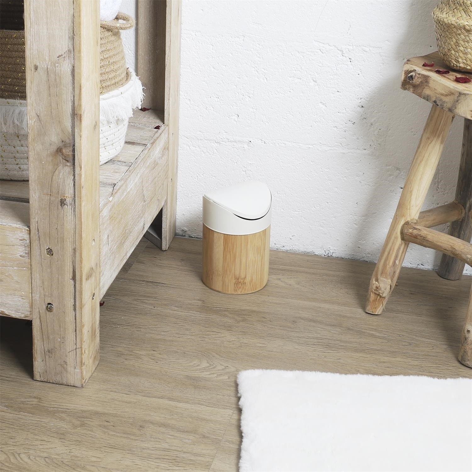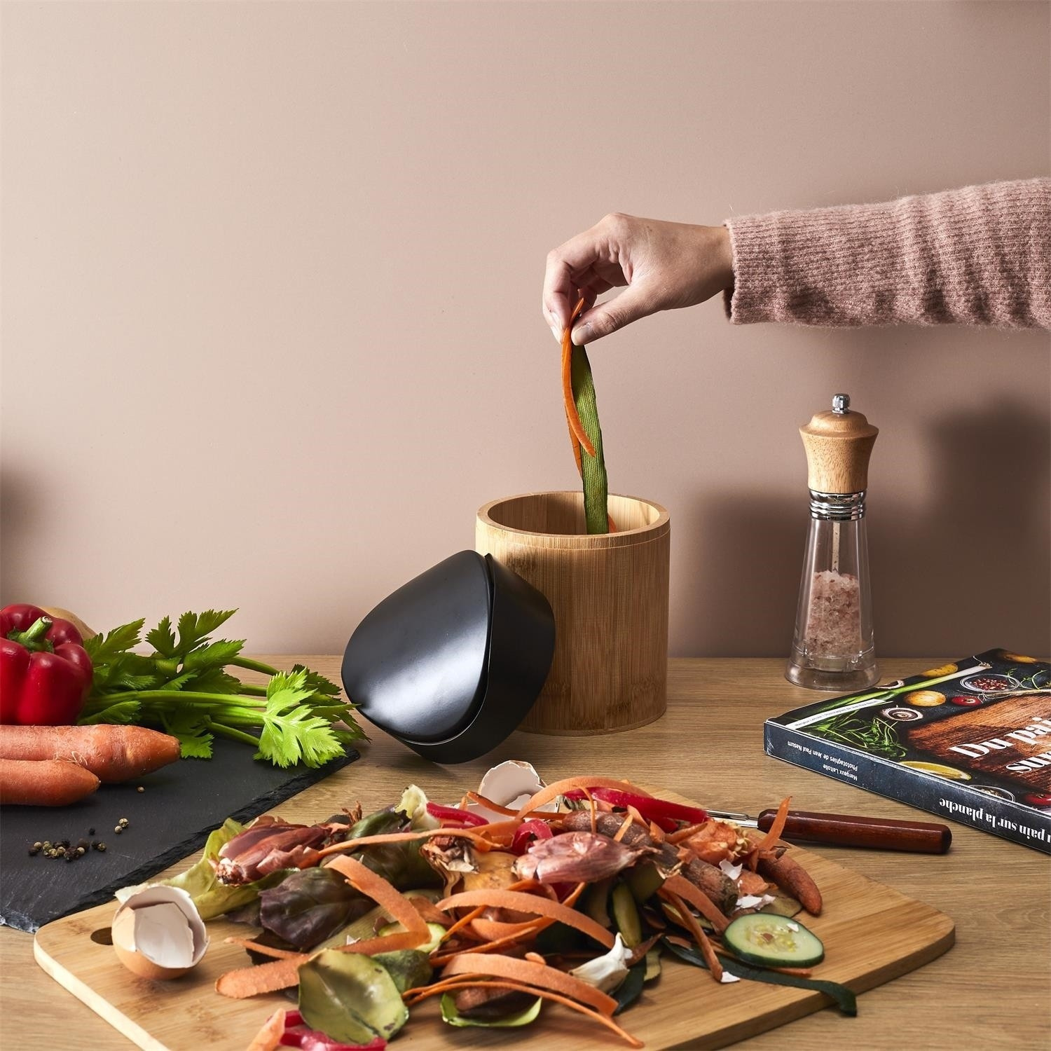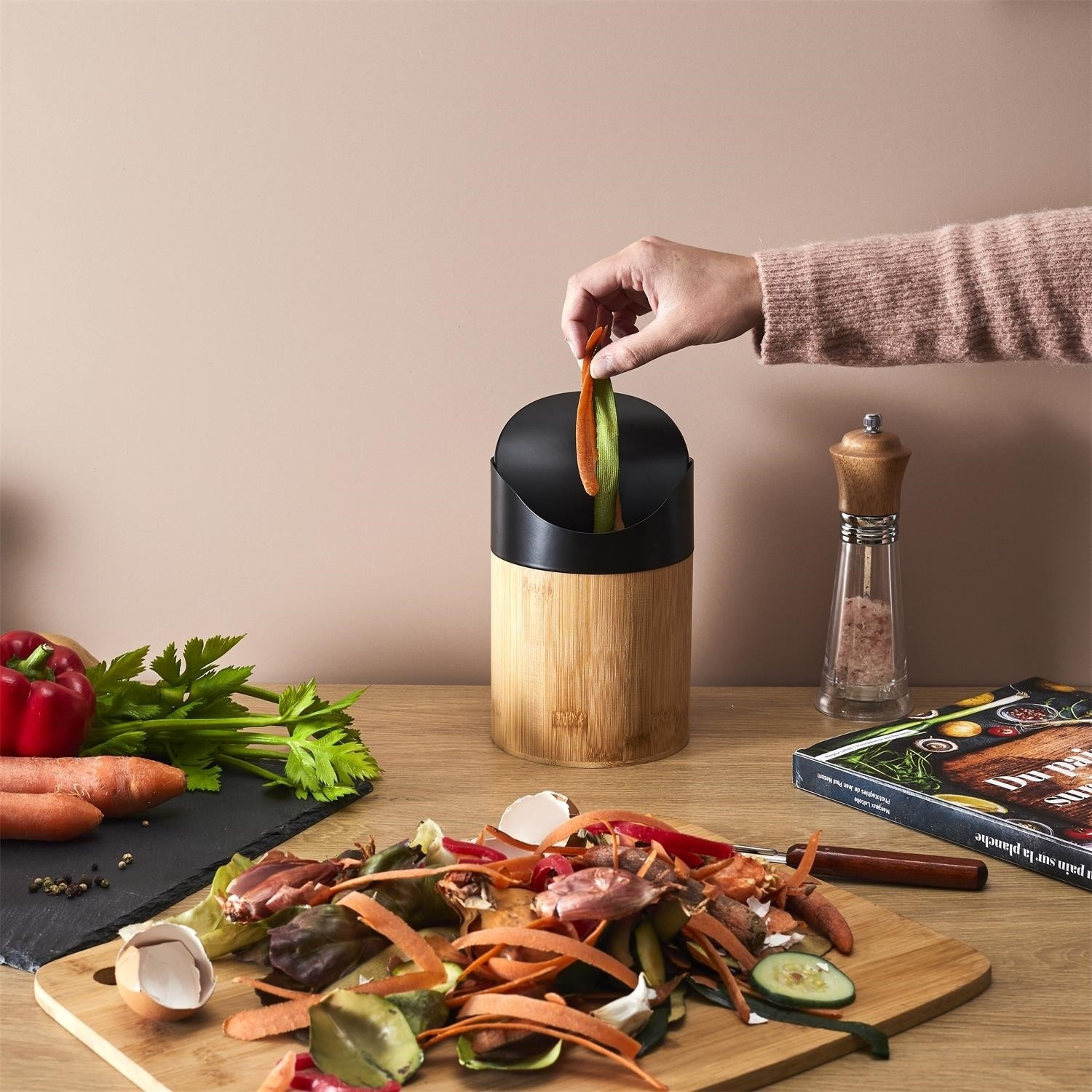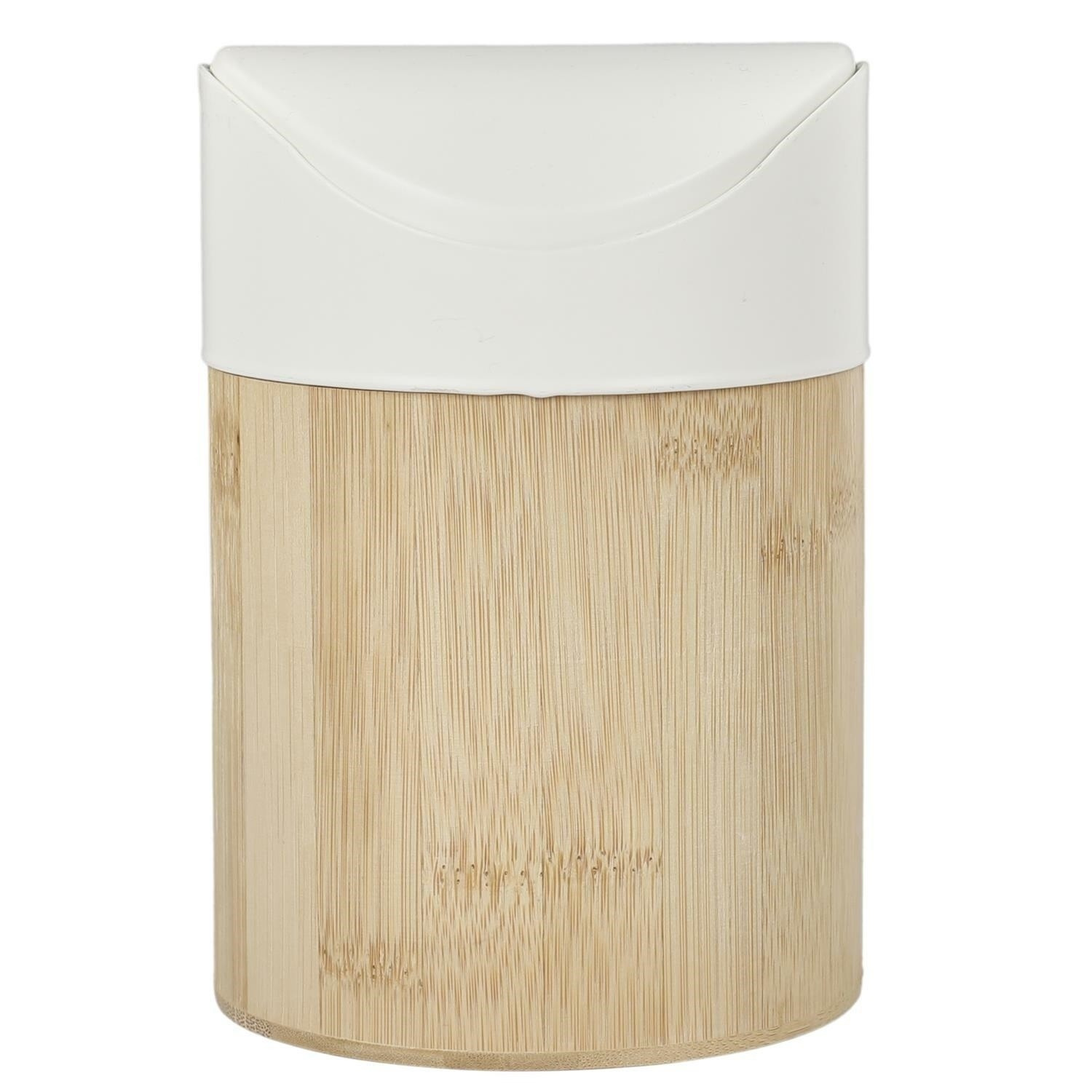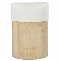 Mini koš z bambusového dřeva je ideální nádobou sloužící jako kompostér nebo na organický odpad v kuchyni. Mini koš vybavený otočným víkem se osvědčí při přípravě pokrmů a také bude ideálním mini kontejnerem na odpadky např. v koupelně nebo v kanceláři. Objem 1 litr. Plastový kryt. Korpus dřevo bambusové.