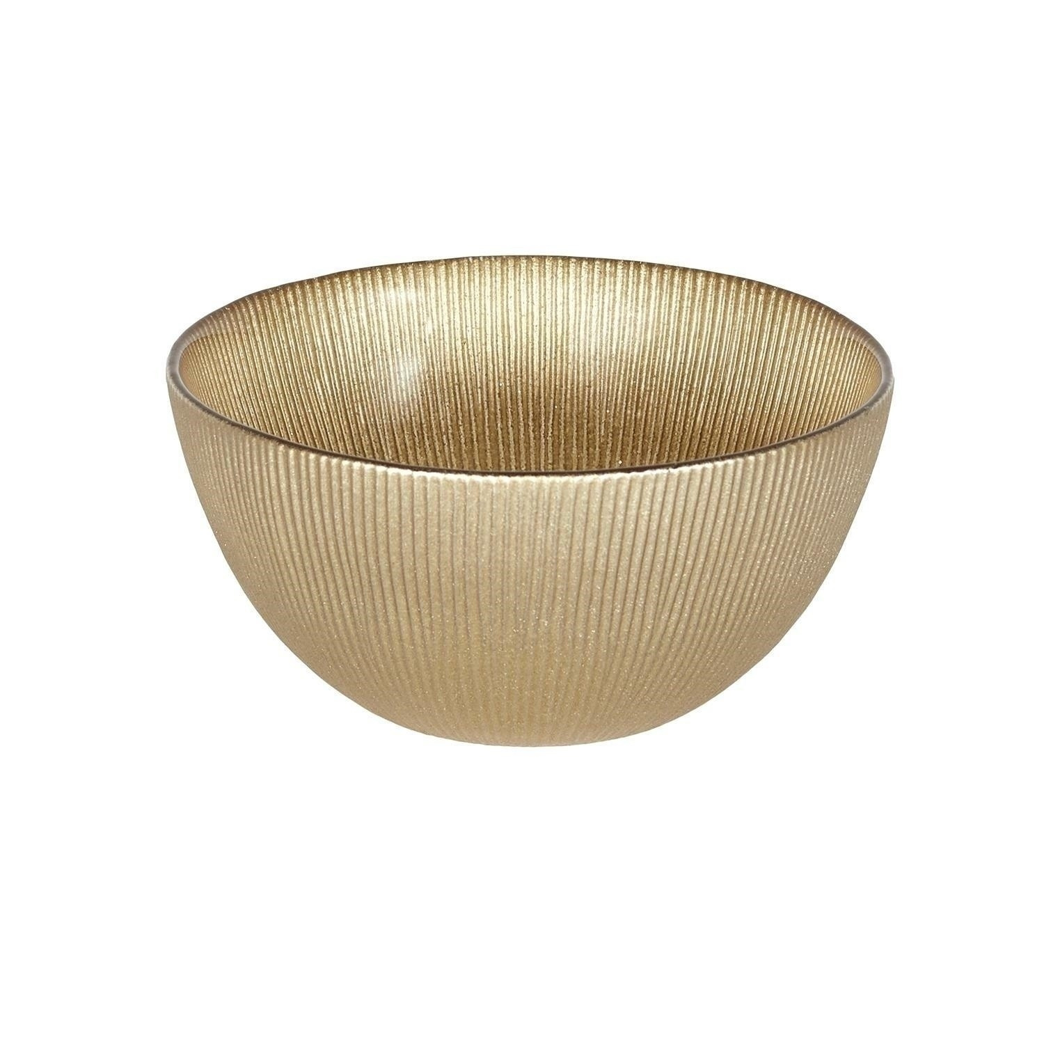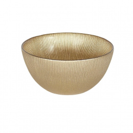 Skleněná mísa o objemu až 700 ml je ideální nádobou pro podávání salátu, masových kuliček nebo sušenek. Mísa byla vyrobena ze skla ve zlaté barvě. Sklo má jemné vertikální pruhy, které dodávají míse elegantní vzhled.