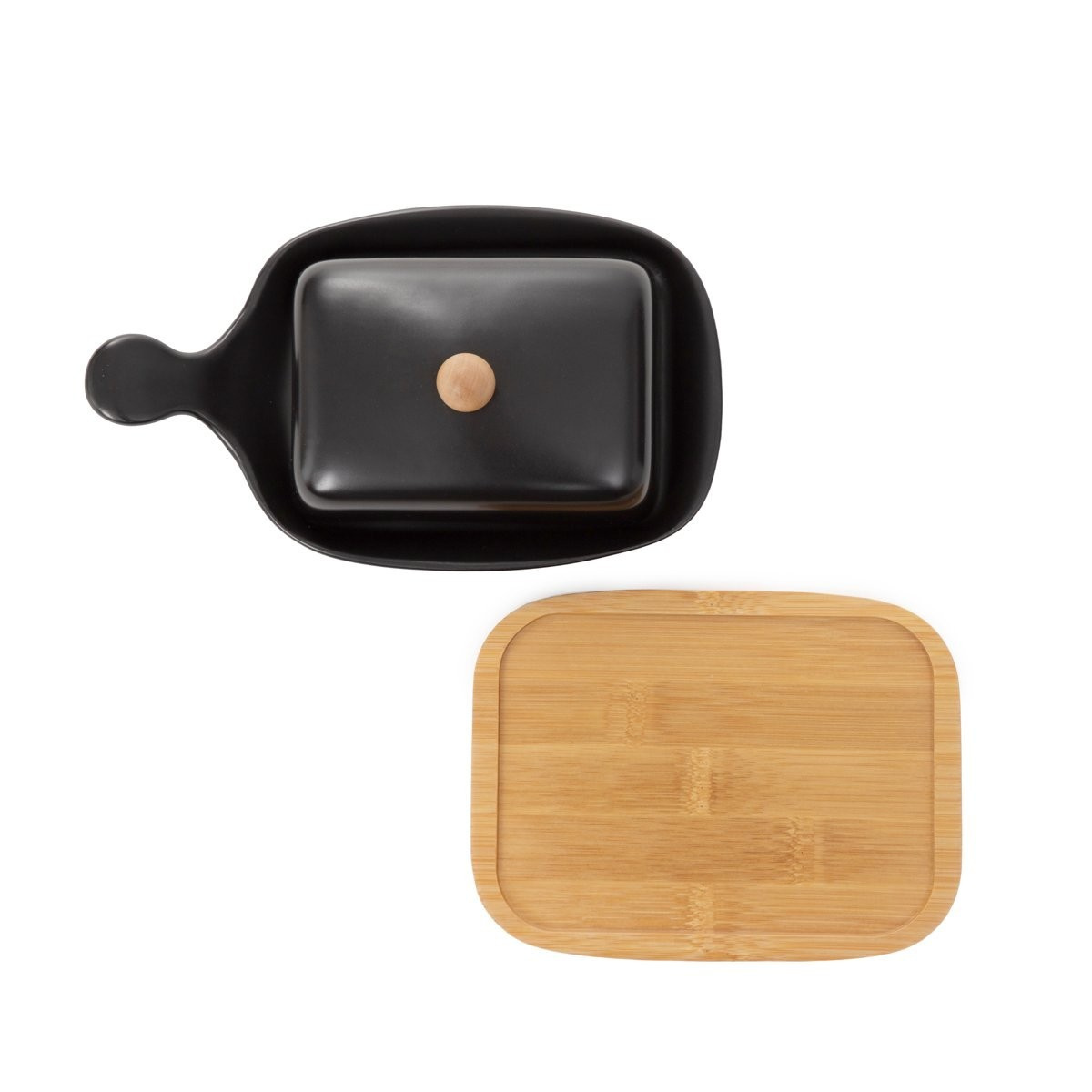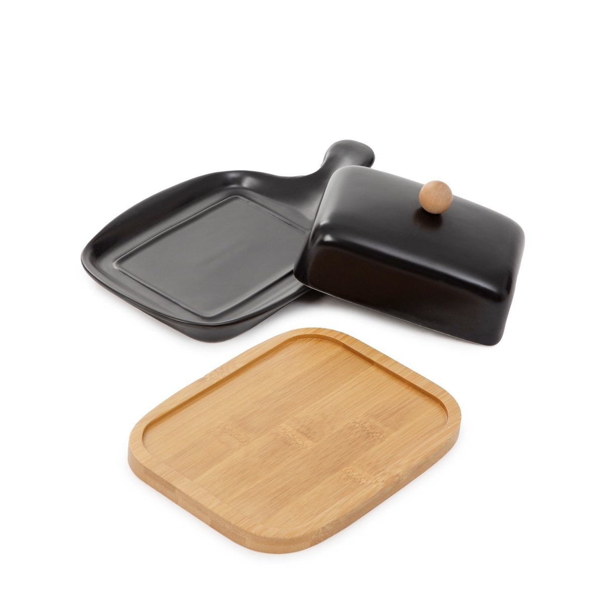 Miska na máslo FINCAN keramická s bambusovým podstavcem černá 22 cm 869704