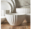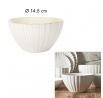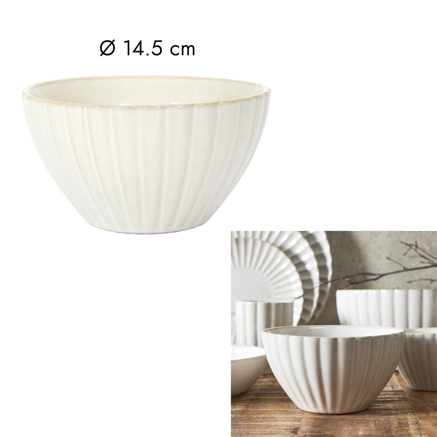 Miska o průměru 14,5 cm Vlora je umělecké dílo samo o sobě. Zajímavý tvar, jemná béžová barva činí stolní nádobí Vloga jemným a zároveň nadčasovým. Rýhované okraje misky připomínají trochu tvar mořské mušle. Misku lze mýt v myčce, lze ji používat v mikrovlnné troubě. Nelze používat v troubě a v mrazáku. Materiál: keramika