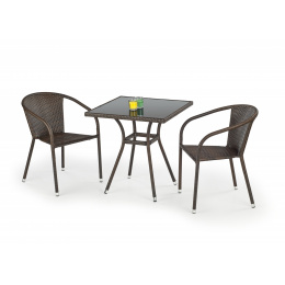 rozměry: 70/70/74 cm, materiál: sklo / umělý ratan, barva: tmavě hnědočerná