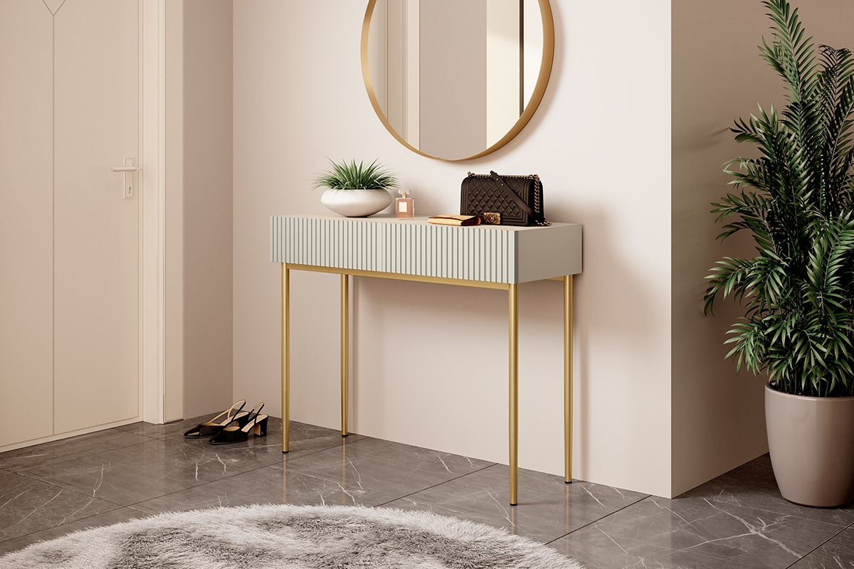 Moderní konzola/toaleta Nicole - kašmír / zlaté nohy, šířka: 100, výška: 82, hloubka: 41, výška nohou: 67