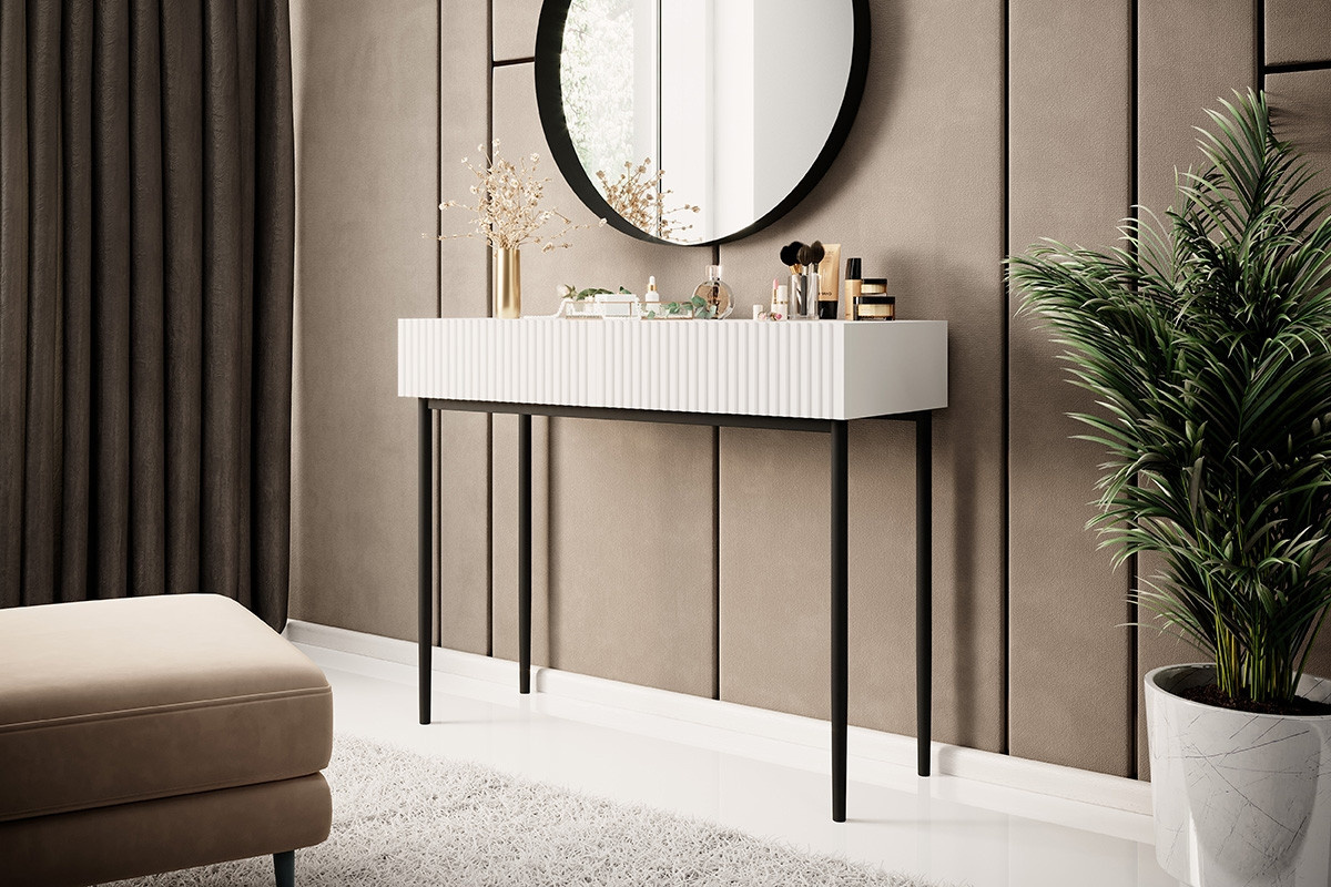 Toaletní stolek Nicole, bílá matná / černé nohy