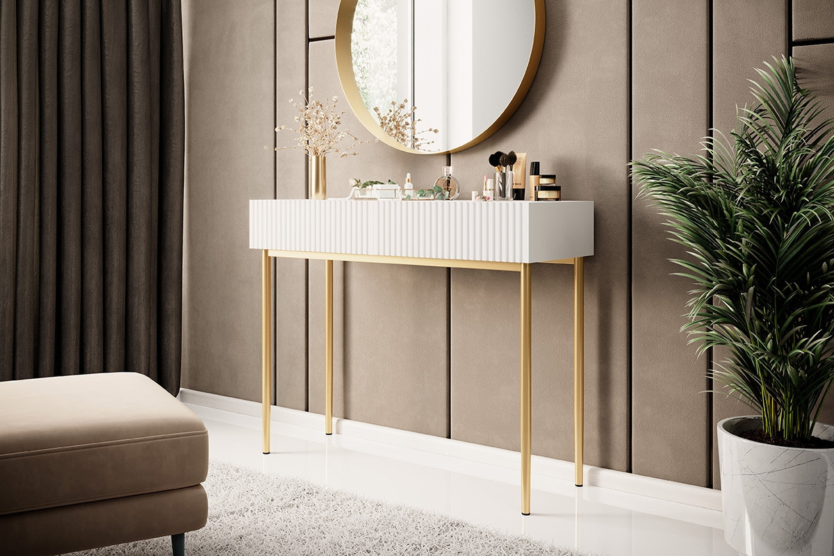 Toaletní stolek Nicole, bílá matná / zlaté nohy