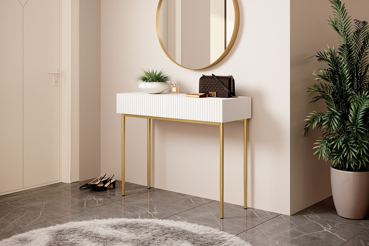 Moderní konzola/toaleta Nicole - bílý mat / zlaté nohy, šířka: 100, výška: 82, hloubka: 41, výška nohou: 67