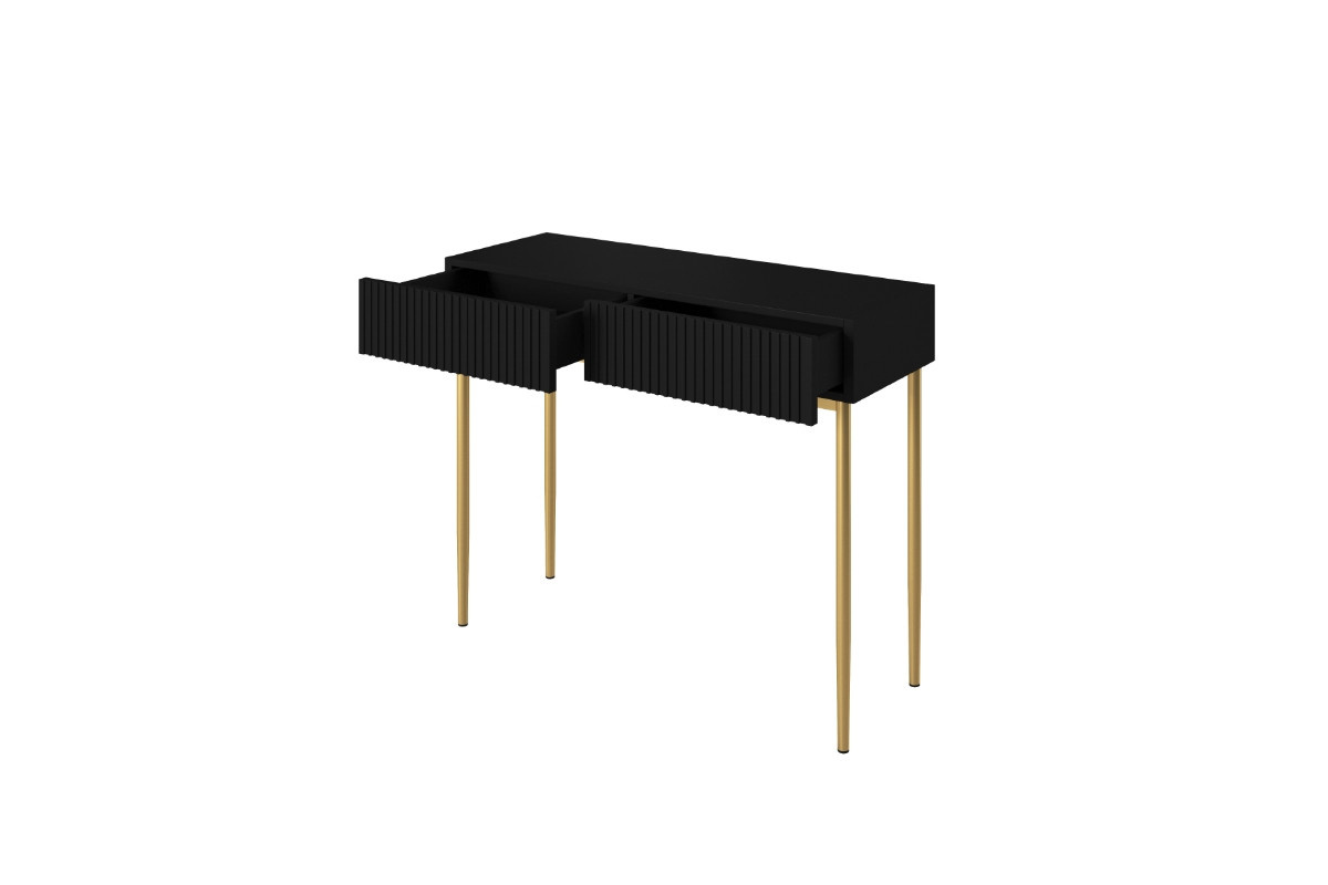 Moderní Toaletní stolek Nicole - Černý mat / zlaté nohy, šířka: 100, výška: 82, hloubka: 41.