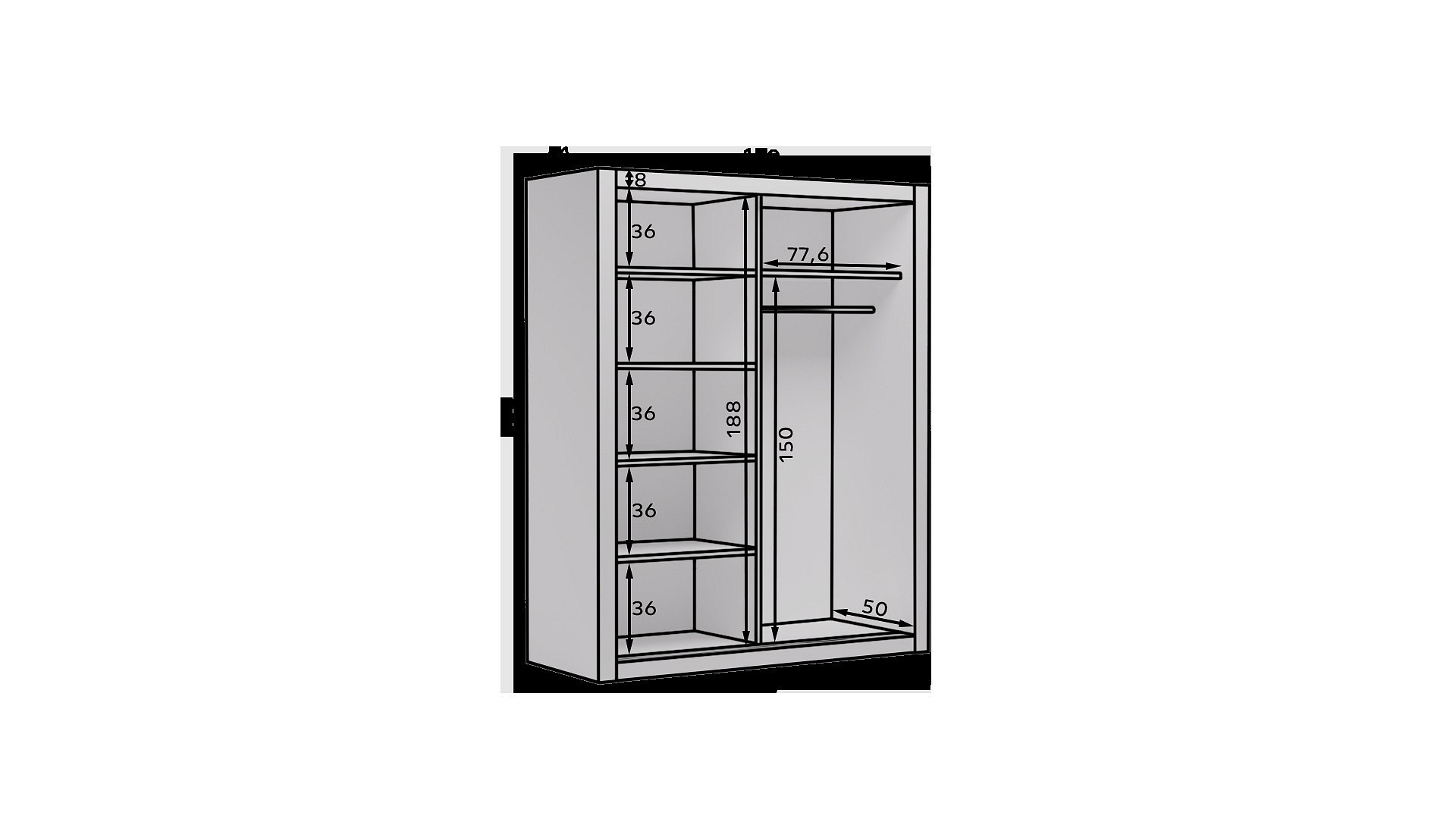 Posuvná skříň MODI-M je ideálním způsobem, jak uspořádat prostor. Nábytek je vybaven prostornými policemi a tyčí, na kterou můžete pověsit šaty, obleky, svrchní oděvy nebo košile. Díky tomu, že skříň je posuvná, nemusíte vyčleňovat další místo na otevření dveří, což z ní činí ideální řešení pro malý pokoj nebo úzkou předsíň.