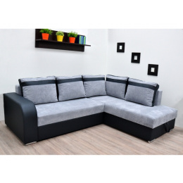Sedací rohová souprava MODUS je rozkládací a s dostatečným úložným prostorem. Je vyplněna bonelovými pružinami s PUR pěnou, což zvyšuje komfort sezení a dostatečné pohodlí. Záda sedací soupravy jsou čalouněná, tudíž je vhodná i pro umístění do prostoru.Korpus je zhotoven z kvalitního odolného dřeva. Šuplík se vysouvá na pogumovaných kolečkách chránící podlaho před případným poškozením. Možnost volby levého, nebo pravého provedení (na obrázku pravé provedení).