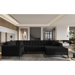 Montez je prostorná, pohodlná a čalouněná rohová pohovka o rozměrech 340 x 180 x 93 cm. Tento nábytek ve tvaru U je ideálně vhodný pro velké místnosti. Má pohodlné, měkké sedadlo vyrobené z odolné vlnité pružiny a také z flexibilní pěny T30, která je odolná proti poškození, škrábancům a promáčknutí. Naše rohová pohovka je multifunkční, protože ji lze velmi snadno přeměnit na postel. Po rozložení kusu nábytku pomocí DL automatu získáme až 275 x 120 cm plochy pro noční odpočinek. Mezi charakteristiky rohové pohovky Montez můžeme zahrnout: vysoké, 51 centimetrů vysoké sedadlo, elegantní prošívání, vysoké, 13 centimetrů ocelové nohy, stejně jako množství dostupných barevných variant. Produkt je dostupný ve všech látkách z kolekce ELTAP. Montez je velmi vkusná, elegantní a především pohodlná rohová pohovka, která se dokonale hodí do interiéru každého většího obývacího pokoje. Stojí za to mít takový multifunkční kus nábytku, který nejen oživí mnoho místností, ale bude v nich sloužit po mnoho let.