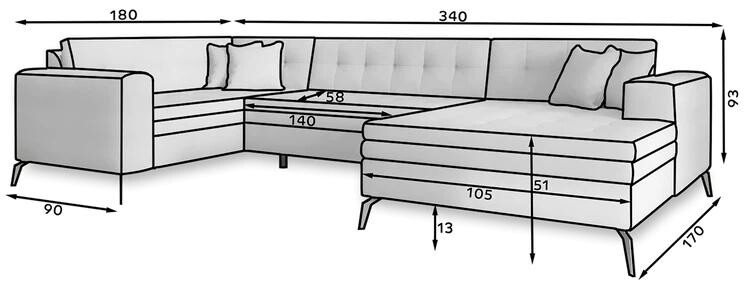 Objevte dokonalou kombinaci elegance, komfortu a funkčnosti s naší sedací soupravou ve tvaru U MONTEZ. Tato moderní sedací souprava je navržena tak, aby se stala středobodem vašeho obývacího pokoje a poskytla vám i vašim hostům maximální pohodlí.