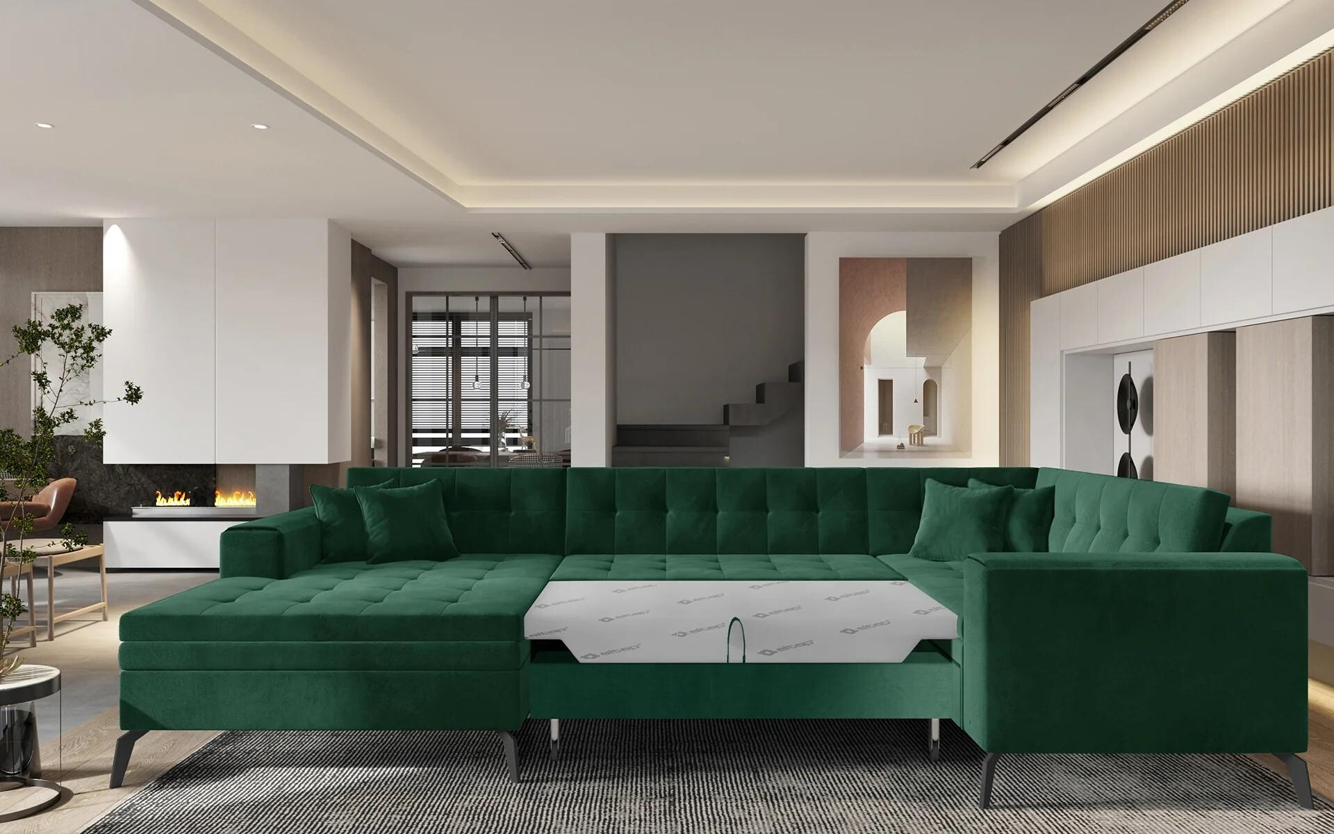Investujte do kvality a stylu s naší sedací soupravou ve tvaru U MONTEZ a užijte si pohodlí a eleganci, kterou přináší do vašeho obývacího pokoje.