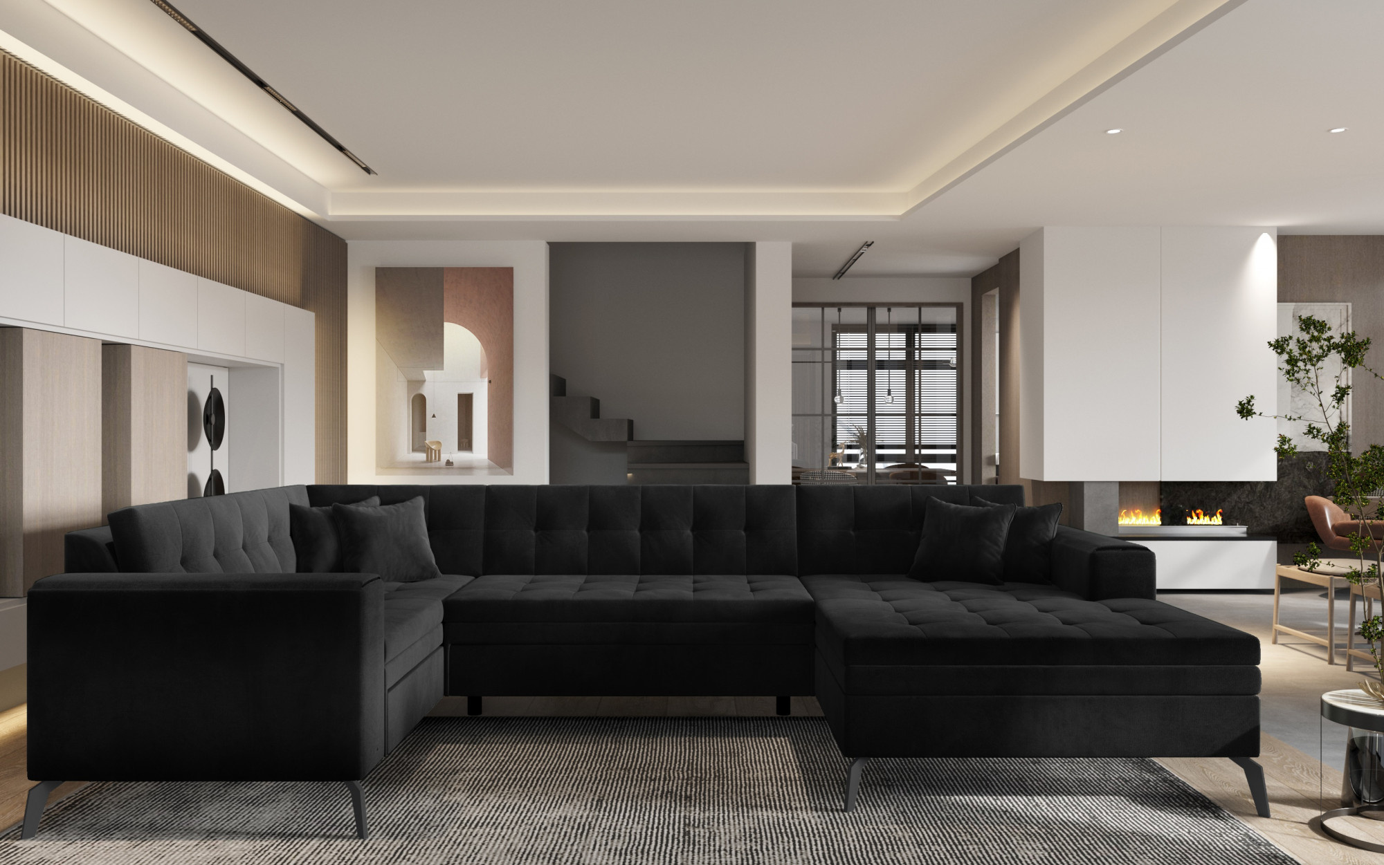 Montez je prostorná, pohodlná a čalouněná rohová pohovka o rozměrech 340 x 180 x 93 cm. Tento nábytek ve tvaru U je ideálně vhodný pro velké místnosti. Má pohodlné, měkké sedadlo vyrobené z odolné vlnité pružiny a také z flexibilní pěny T30, která je odolná proti poškození, škrábancům a promáčknutí. Naše rohová pohovka je multifunkční, protože ji lze velmi snadno přeměnit na postel. Po rozložení kusu nábytku pomocí DL automatu získáme až 275 x 120 cm plochy pro noční odpočinek. Mezi charakteristiky rohové pohovky Montez můžeme zahrnout: vysoké, 51 centimetrů vysoké sedadlo, elegantní prošívání, vysoké, 13 centimetrů ocelové nohy, stejně jako množství dostupných barevných variant. Produkt je dostupný ve všech látkách z kolekce ELTAP. Montez je velmi vkusná, elegantní a především pohodlná rohová pohovka, která se dokonale hodí do interiéru každého většího obývacího pokoje. Stojí za to mít takový multifunkční kus nábytku, který nejen oživí mnoho místností, ale bude v nich sloužit po mnoho let.