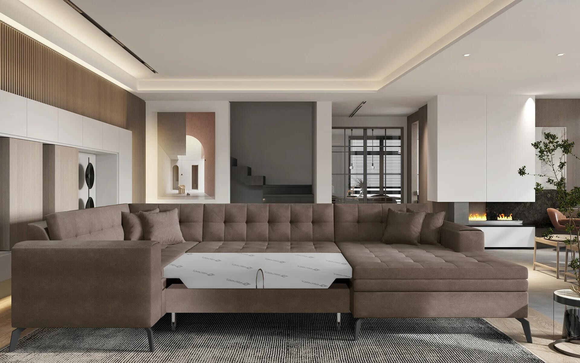 Investujte do kvality a stylu s naší sedací soupravou ve tvaru U MONTEZ a užijte si pohodlí a eleganci, kterou přináší do vašeho obývacího pokoje.
