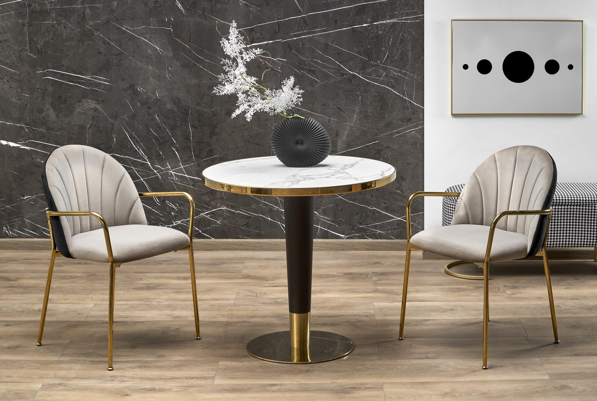 Jídelní stůl MORATA, efekt bílého mramoru/černá/zlatá
