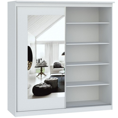 Skříň je vybavena zrcadlem, které nejenže přidává na estetické hodnotě, ale také opticky zvětšuje prostor a přináší do místnosti více světla. Zrcadlo je umístěno na jedněch z posuvných dveří, což umožňuje rychlou kontrolu vašeho vzhledu před odchodem z domu.