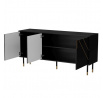 MOUNTAIN komoda 150(3D) rozměry: V/Š/H - 72cm/154cm/40cm materiál: korpus: laminovaná deska 16 mm čela: černá matná MDF deska 16mm + zlaté lakované prvky Nohy: kovové (černé/zlaté), výška 18 cm Úchyt: systém PUSH TO OPEN