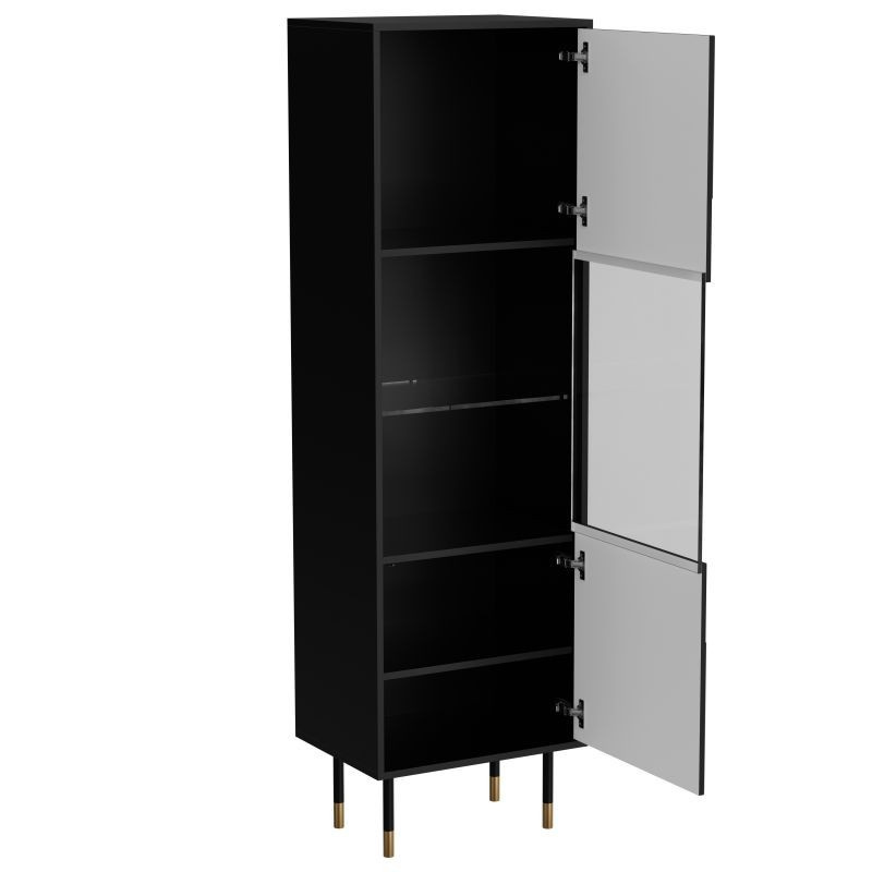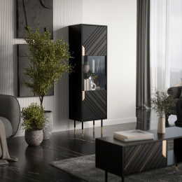 MOUNTAIN web 54 rozměry: V/Š/H - 180cm/54cm/40cm materiál: korpus: laminovaná deska 16 mm čela: černá matná MDF deska 16mm + zlaté lakované prvky, sklo Nohy: kovové (černé/zlaté), výška 18 cm Úchyt: systém PUSH TO OPEN