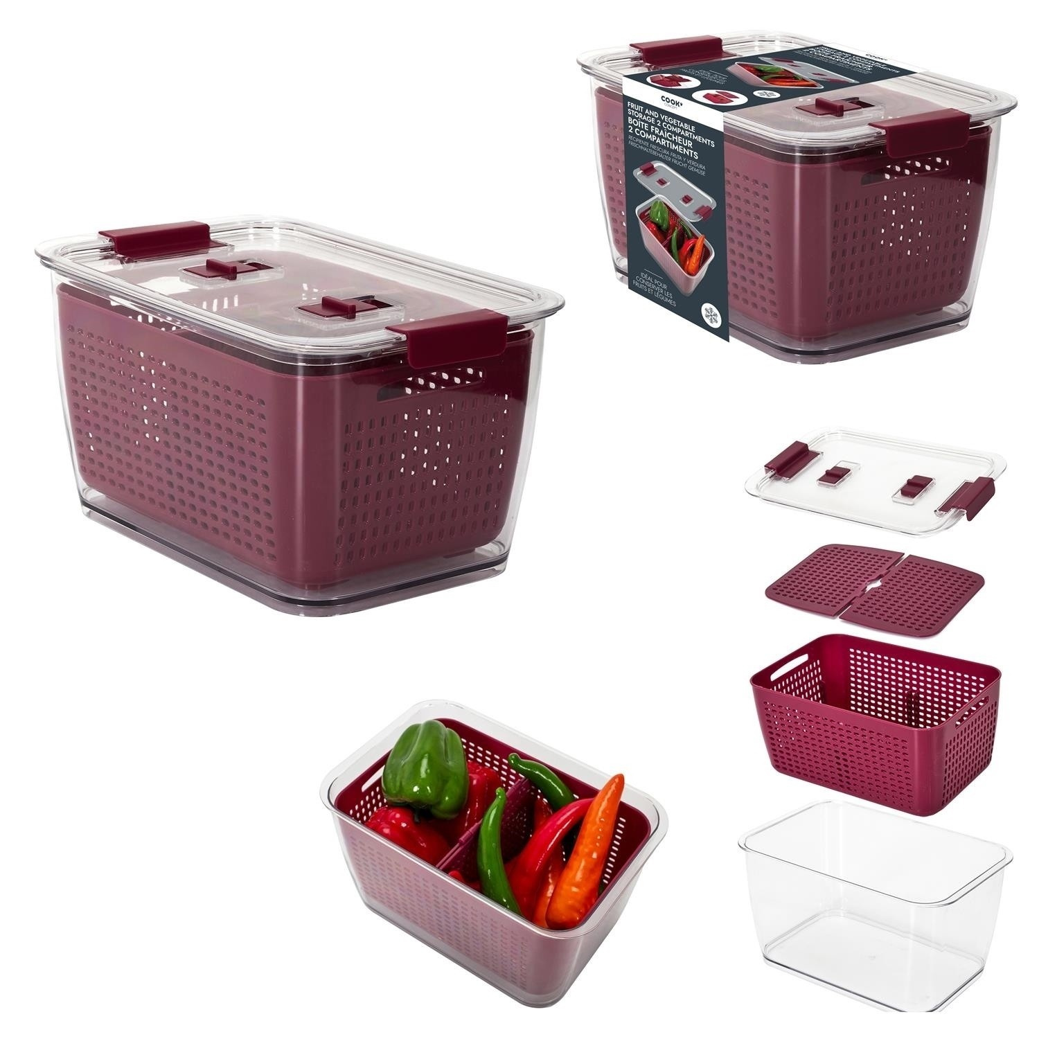Nádoba na skladování ovoce a zeleniny v lednici bordová