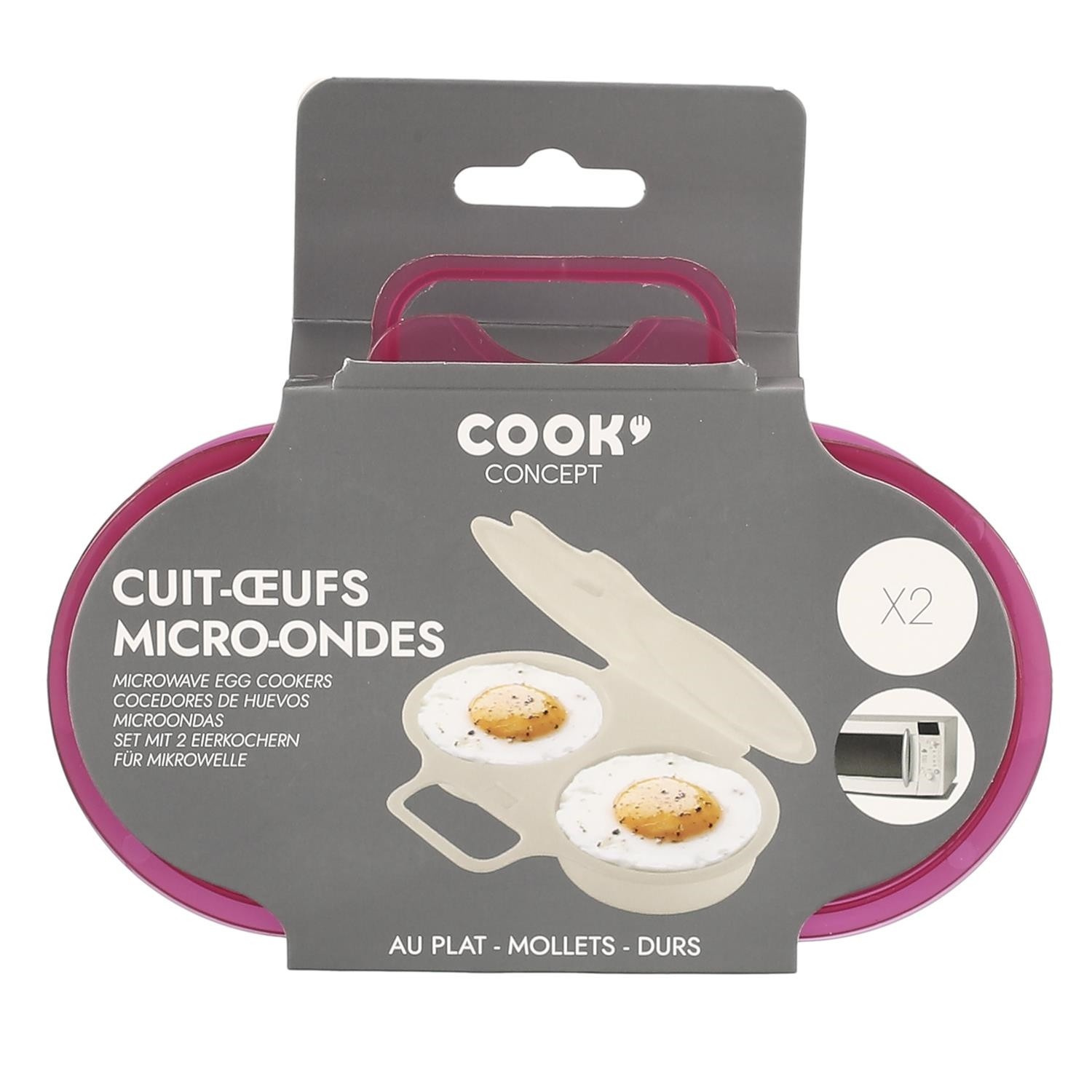 Díky této silikonové nádobě snadno uvaříte volské oko v mikrovlnné troubě. Nádoba vybavená dvěma přihrádkami na vejce. Stačí rozbít vejce a vložit do mikrovlnné trouby. Snadný způsob, jak podávat rovnoměrně uvařená vejce.