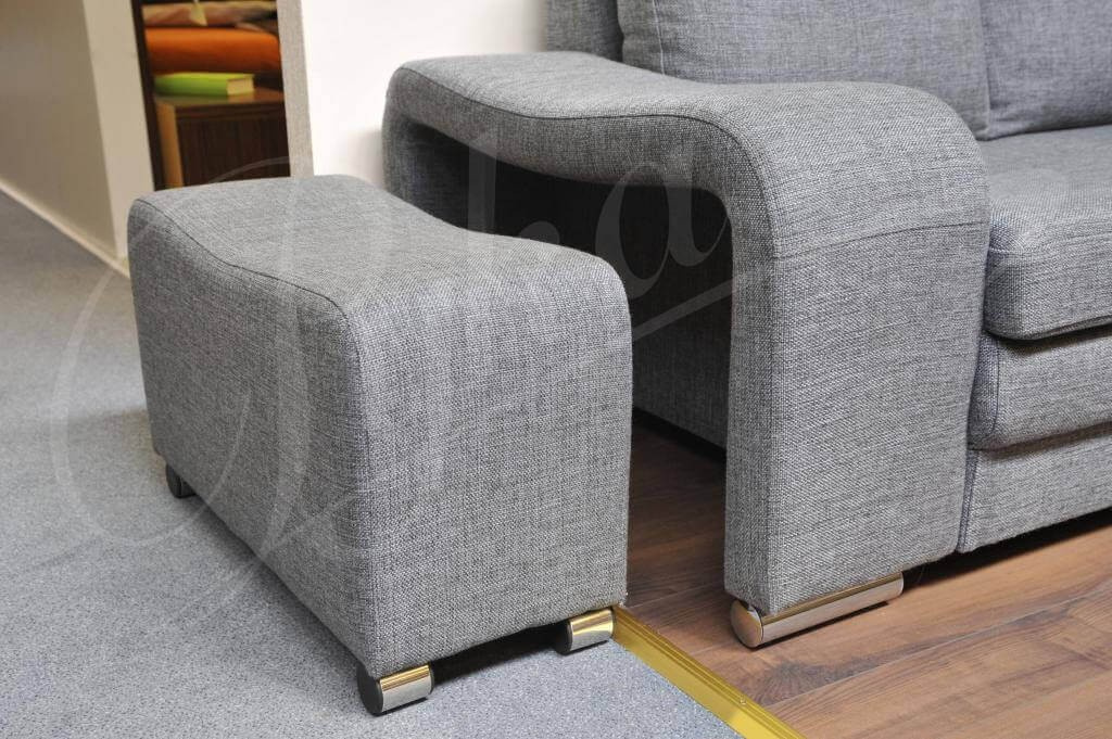 Moderní rohová sedačka Enzo je díky svému jednoduchému tvaru a vhodnému vyplnění ideálním nábytkem pro odpočinek. Jemné chromované povrchové úpravy dodávají eleganci a moderní vzhled. Další výhodou této rohové sedačky jsou dvě taburety skryté v područkách. \n \n \n \nSpecifikace: \n \n- Vlnitá pružina \n- Vysoce elastická pěna HR \n- Funkce spaní \n- Nastavitelné opěrky hlavy \n- Kovové nožky \n \n* nábytek vyrobený na individuální objednávku - doba realizace objednávky od 3 do 5 týdnů