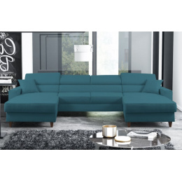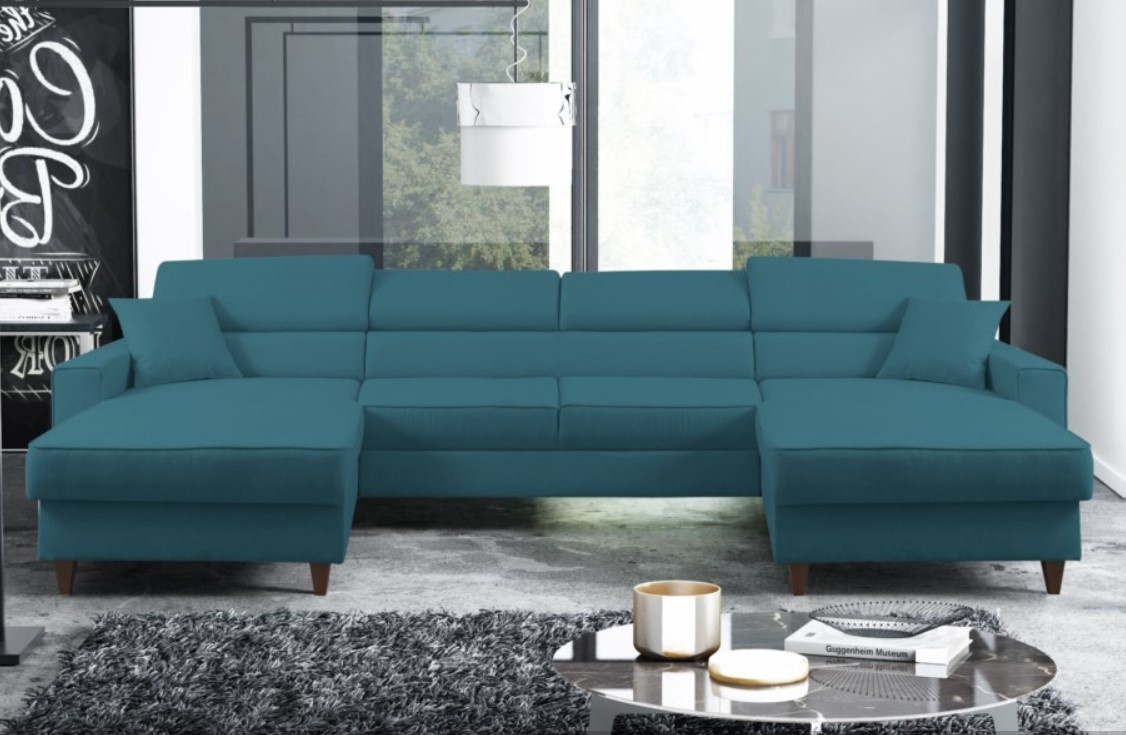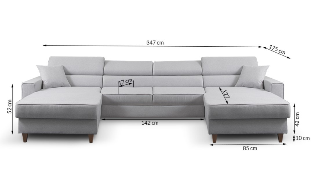 Rohová sedačka má funkci spaní a 2x úložný prostor na lůžkoviny. Nohy v rohu byly použity dřevěné. Rohová sedačka má 4 nastavitelné opěrky hlavy a ozdobné prošívání. Byl vyroben na vlnitých pružinách + vysoce elastická pěna typ T30. ROZMĚRY: šířka: 347 cm výška: 87 cm hloubka: 175 cm z obou stran plocha na spaní: 125 cm x 300 cm Všechny rozměry jsou uváděny s tolerancí +/- 3 cm.