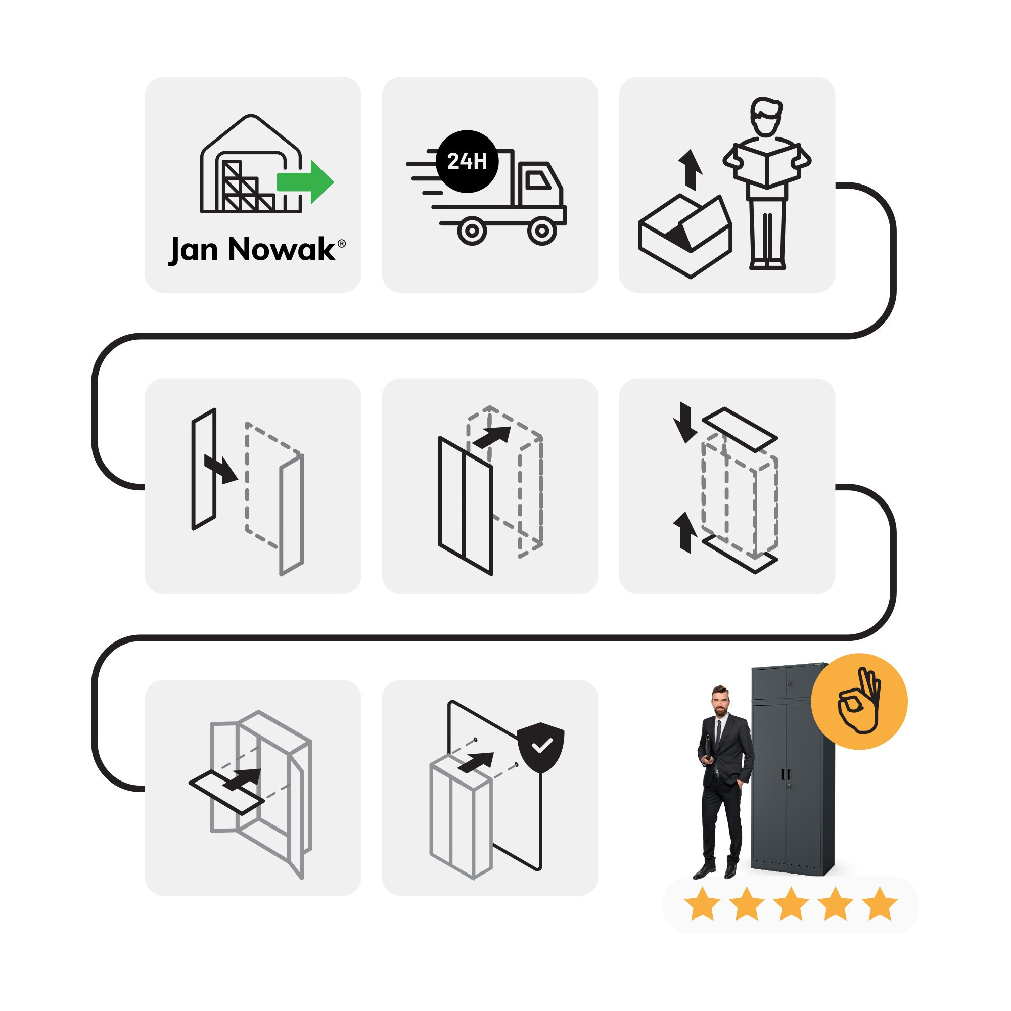 - Skrytý montážní systém: Estetické a bezpečné spojení se skříní JAN Compact.