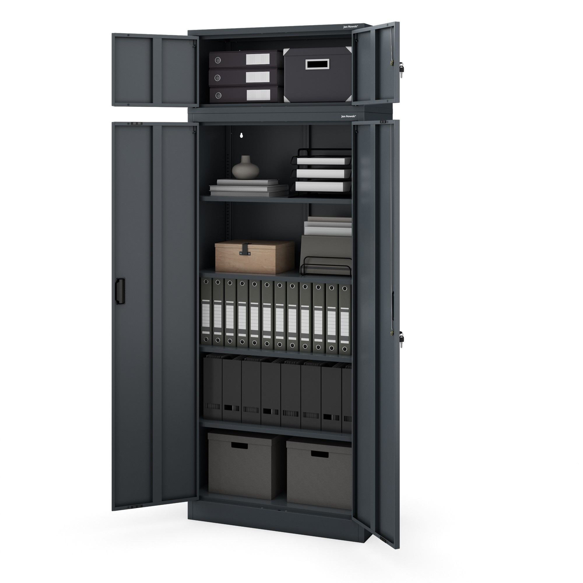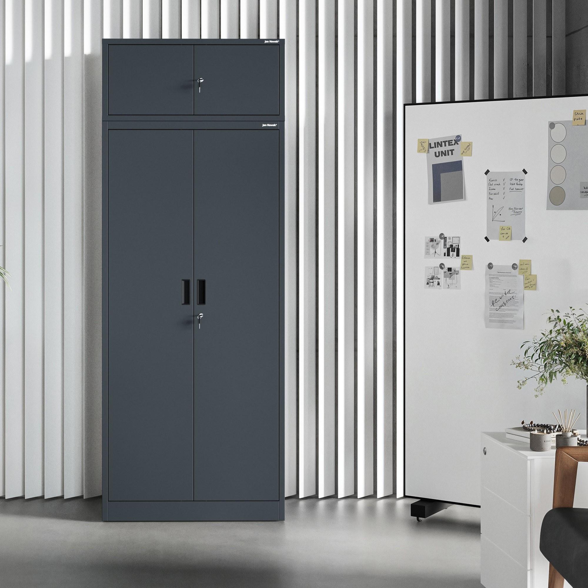 Potřebujete více úložného prostoru, ale nechcete obětovat cenné místo ve vaší kanceláři, dílně nebo skladu? Představujeme vám EWA Compact – modulární nástavec, který elegantně a efektivně rozšíří úložné možnosti vaší skříně JAN Compact. Zapomeňte na přeplněné police a nepořádek. S EWA Compact získáte organizovaný a bezpečný prostor pro vše, co potřebujete mít po ruce, ale ne nutně na očích.
