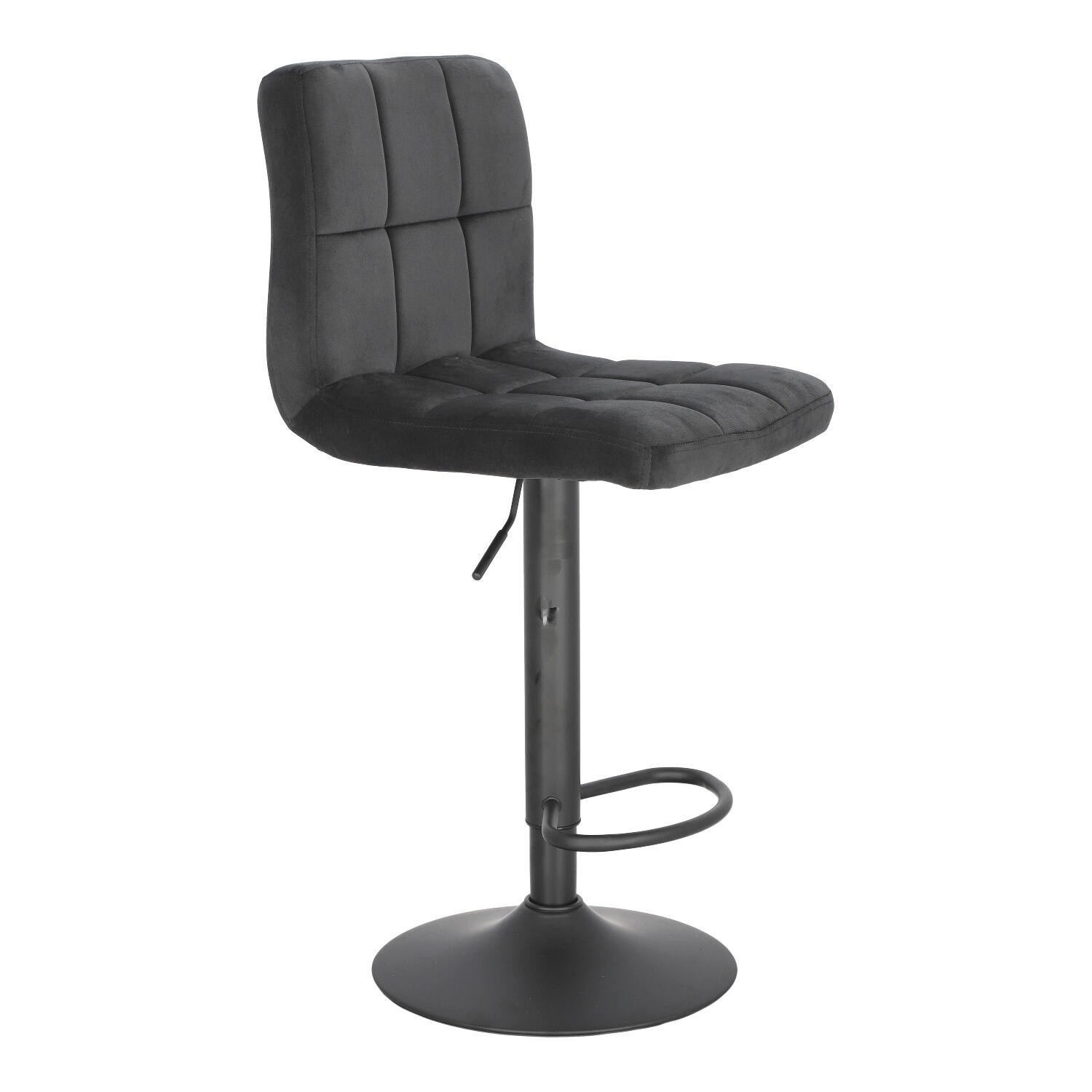 Hoker Dafne je stylová nastavitelná barová židle, která se přizpůsobí naší kuchyňské lince nebo baru. Prošívané sedadlo a opěradlo byly potaženy měkkou sametovou tkaninou. Pod látkou se skrývá pohodlná čalounická pěna s měkkou a kompaktní strukturou. Židle s nastavitelnou výškou v rozsahu 10 cm umožní libovolnou konfiguraci výšky sedadla. Na noze hokera byla umístěna opěrka na nohy. Kovová, práškově lakovaná základna má tvar trumpety, tj. štíhlá noha se směrem dolů rozšiřuje. Takové řešení je stabilní. Výška: 87-107 Šířka: 40 Hloubka: 38 Výška sedáku: 63-83, Max. zatížení: 120 kg