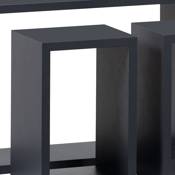 Sada tří nástěnných poliček v matném šedém provedení je vyrobena z MDF materiálu, který zajišťuje pevnost a stabilitu. Poličky mají jednoduchý obdélníkový tvar s čistými liniemi, což umožňuje jejich univerzální využití v různých typech interiérů. Díky různým rozměrům lze poličky kombinovat a vytvářet tak praktické i dekorativní uspořádání na stěně. Povrchová úprava v matné šedé barvě snadno ladí s moderním i minimalistickým stylem. Poličky jsou baleny v ochranné fólii, která chrání povrch při přepravě a skladování.