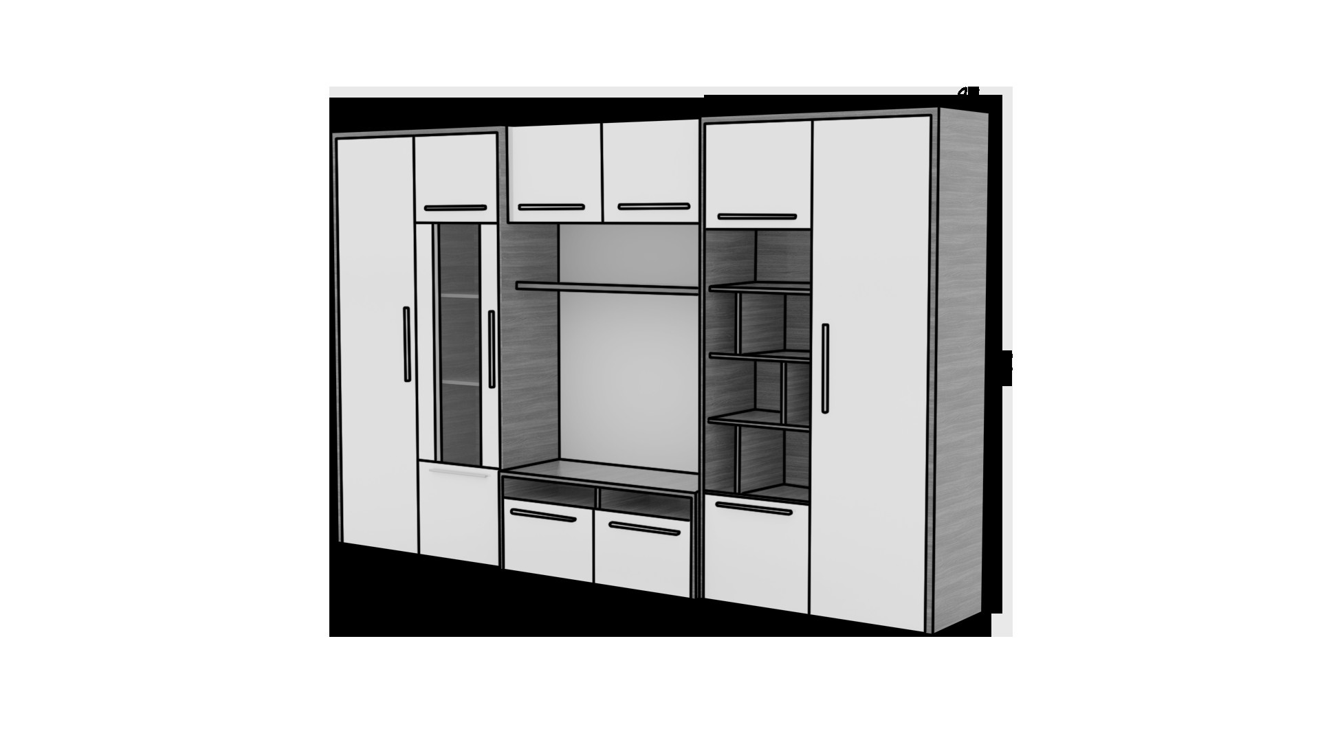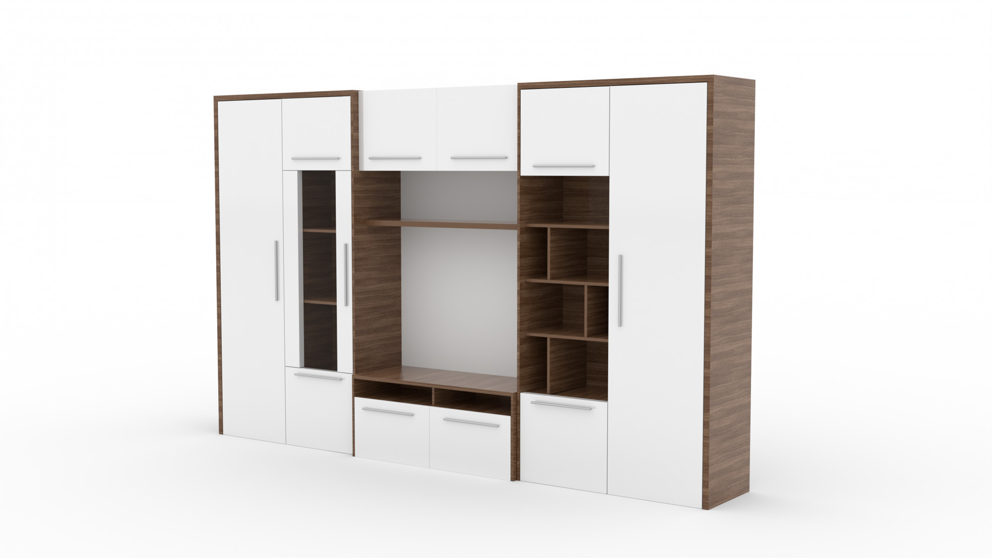 Obývací stěna MARIO je mimořádně funkčním nábytkem. Součástí obývací stěny jsou dvě skříňky, praktický regál, na který můžete umístit oblíbené knihy nebo fotografie blízkých, prostorná vitrína, TV skříňka a závěsná police. Obývací stěna MARIO má prostorné skříňky a objemné police, což z ní činí ideální místo pro uspořádání drobných předmětů.
