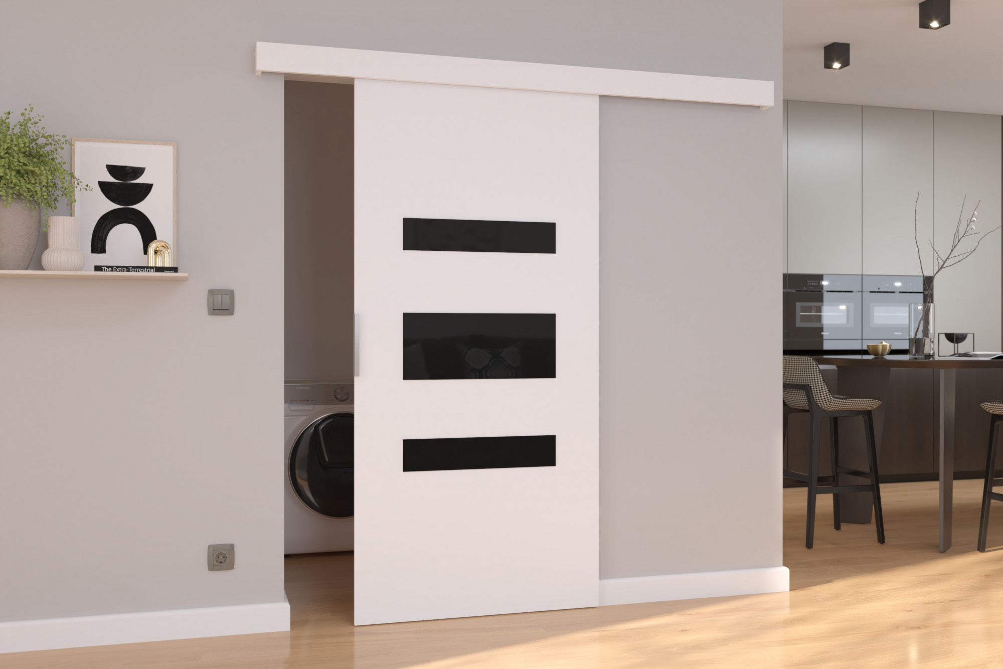 Posuvné dveře DESIO jsou skvělým nápadem pro optimální využití prostoru. Umožňují vytvoření dodatečného prostoru, opticky zvětšují místnost. Vkusně oddělují jednu místnost od druhé.Posuvné dveře DESIO byly vyrobeny z laminované desky s vložkami z lesklého lacobelu. Možnost montáže na levou nebo pravou stranu - univerzální dveře. Navíc si můžete dokoupit samozavírač, který zabraňuje jakýmkoli prudkým nárazům. Doporučujeme se seznámit s dalšími modely a velikostmi dveří.