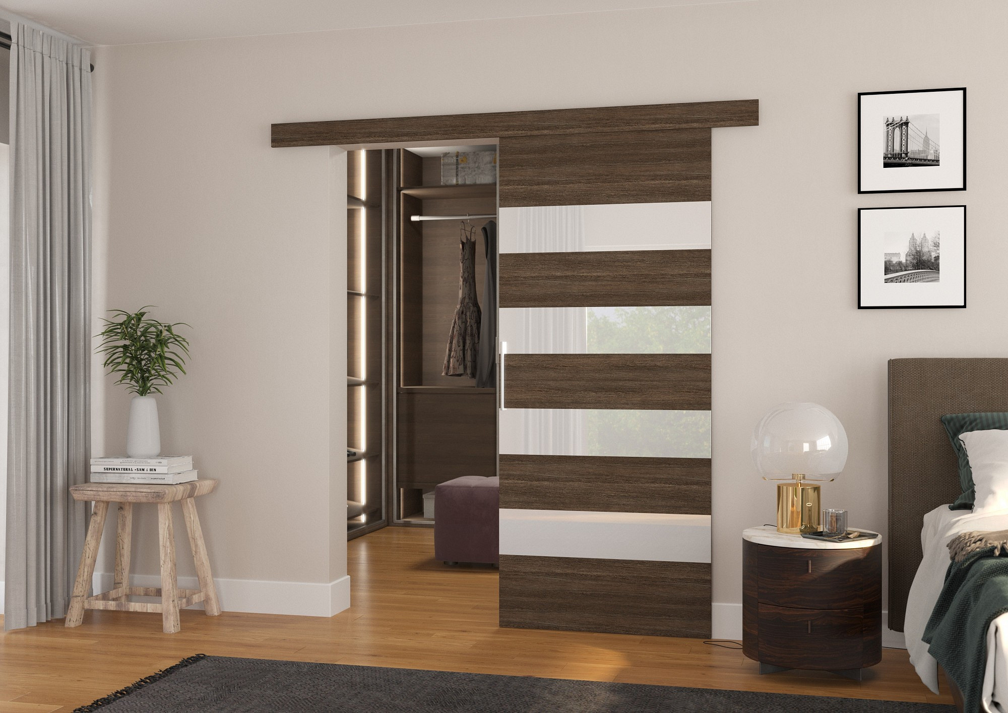 Posuvné dveře na stěnu MILOU 96 Choco+White Lacobel