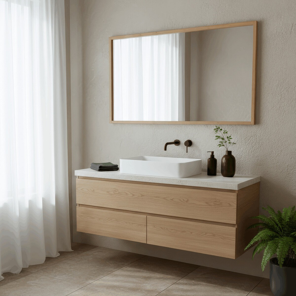Nástěnné zrcadlo o rozměrech 60x90 cm je osazeno kvalitním sklem s rámem z masivního bambusu v přírodním odstínu. Bambusový rám vyniká pevností a příjemnou texturou, která dodává zrcadlu přírodní a zároveň moderní vzhled. Díky svému jednoduchému a čistému designu se hodí do různých typů interiérů, kde přispívá k optickému zvětšení prostoru a lepšímu osvětlení. Zrcadlo je určeno k zavěšení na stěnu a díky masivnímu rámu nabízí stabilní a trvanlivé provedení. Přírodní materiál se snadno udržuje a zajišťuje dlouhou životnost produktu.