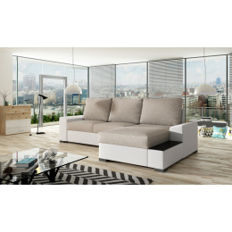 Negro je pohodlný, jednoduchý kus nábytku, který má klasické uspořádání a formu pro rohové pohovky, ale vyniká svým stylovým provedením, dřevěnými nohami a prostornými polštáři. Kus nábytku o rozměrech 245 x 160 x 90 cm je vyplněn vlnitou pružinou a pěnou T30, které uživateli poskytují maximální pohodlí každý den. Díky možnosti rozložení rohové pohovky s funkcí DL se nábytek promění v postel o rozměrech 205 x 145 cm. Je také vybaven prostorným úložným prostorem. Další výhody tohoto modelu zahrnují: rozšířený otoman ve stylu s policí zdobenou sklem, stejně jako další prostor pro drobnosti a oblíbené knihy. Negro je rohová pohovka, která je pohodlná a praktická. Bude to jistě nejvhodnější volba pro ty, kteří hledají originální řešení.
