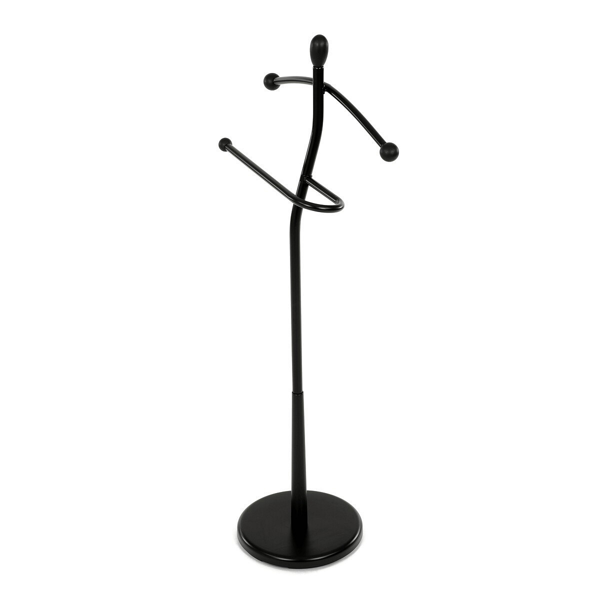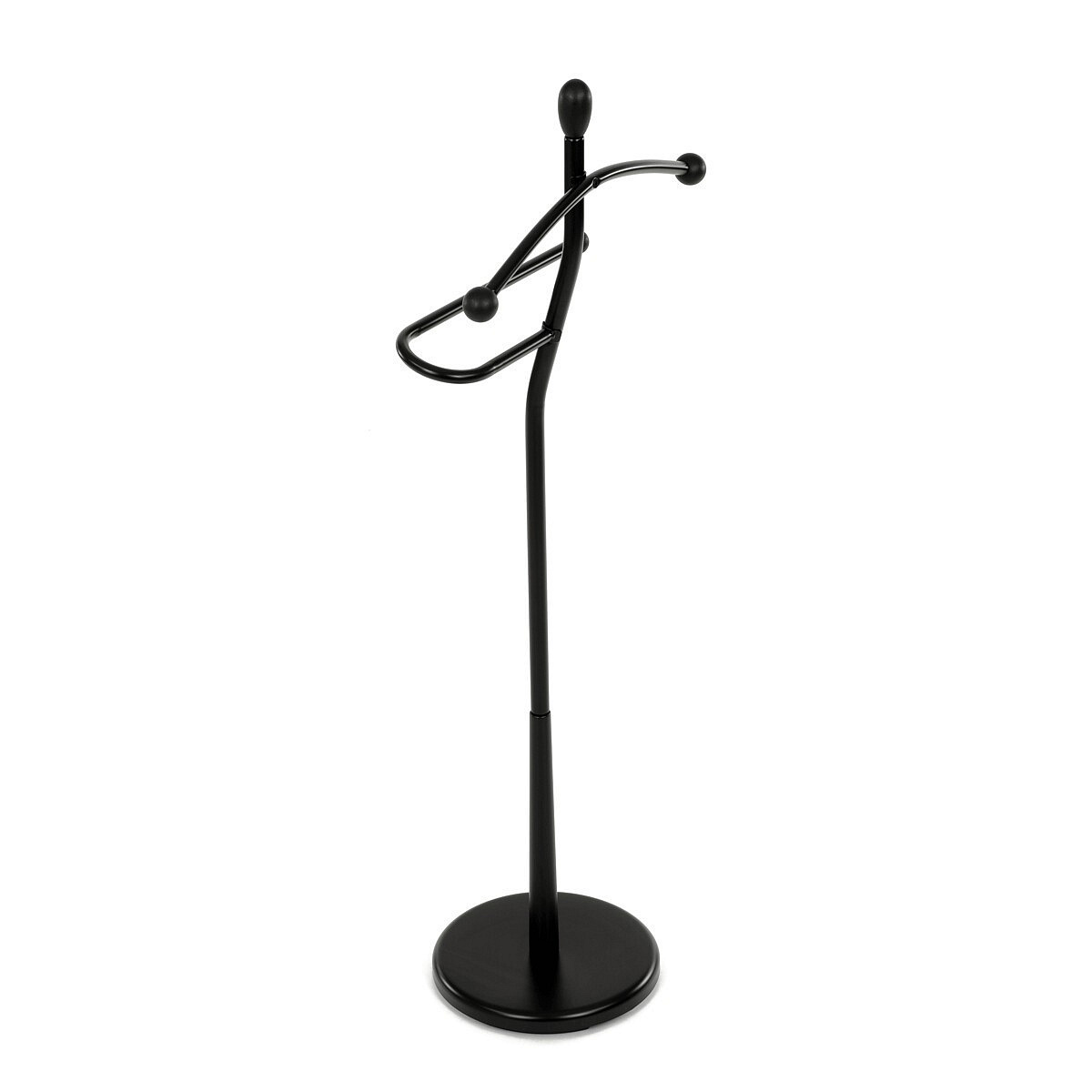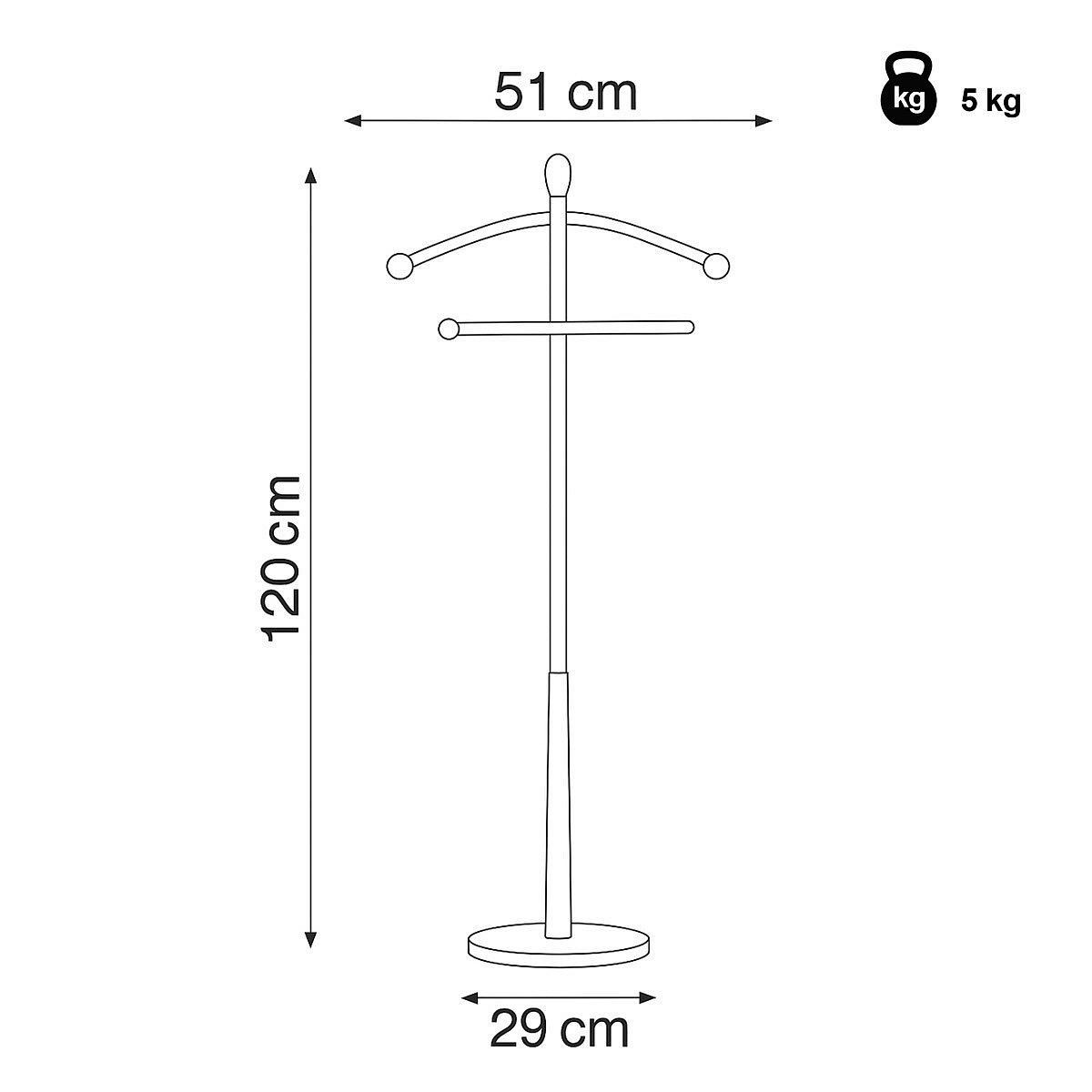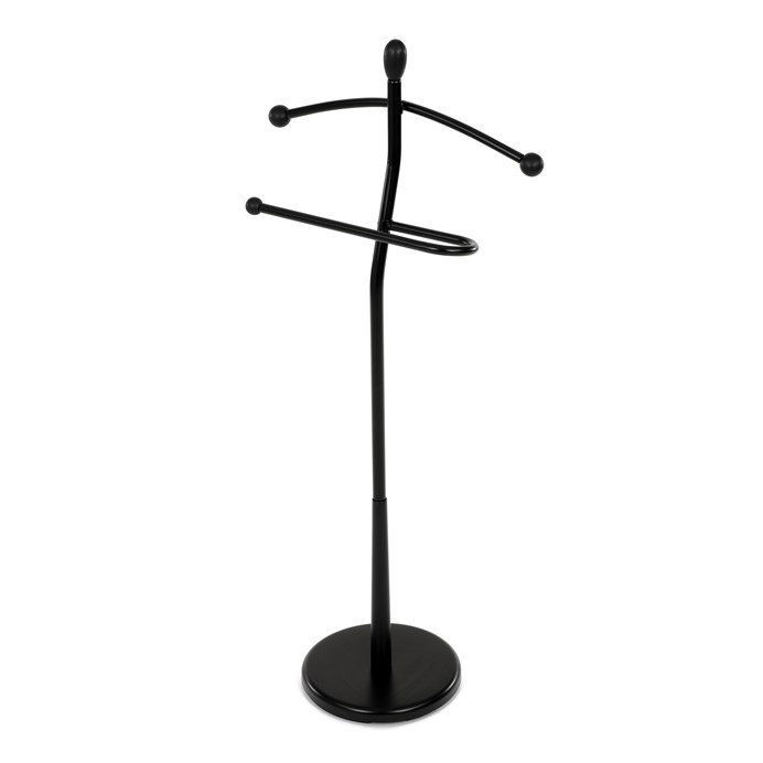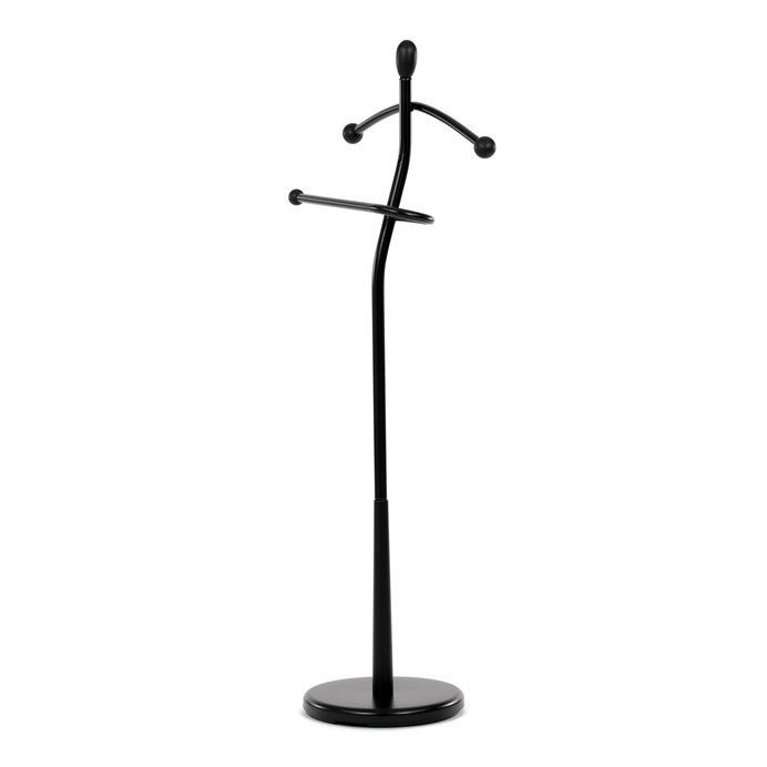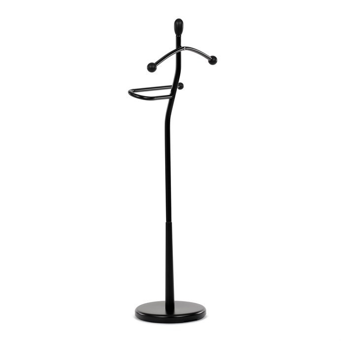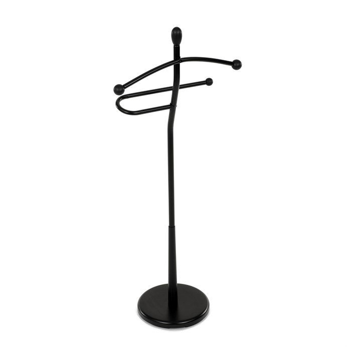 Praktický minimalistický němý sluha v sobě kombinuje prvky z masivního kaučukovníkového dřeva s kovovými nosnými díly v černé povrchové úpravě. Tento model je v celočerném provedení. Výška 120 cm Vám umožní zavěšení oblečení i doplňků zcela bez pomačkání. Nosnost stojanu je až 5 kg rovnoměrně rozprostřené zátěže, hmotnost 5 kg. Konstrukce je zakončena kovovou chromovanou podestou se zátěží v černém plastovém pouzdře. Stojan je jednoduše přenositelný a lze ho umístit podle momentální potřeby i nálady. Stylem a jednoduchostí se hodí do jakéhokoli interiéru. Využití je nepřeberné, záleží jen na Vás.