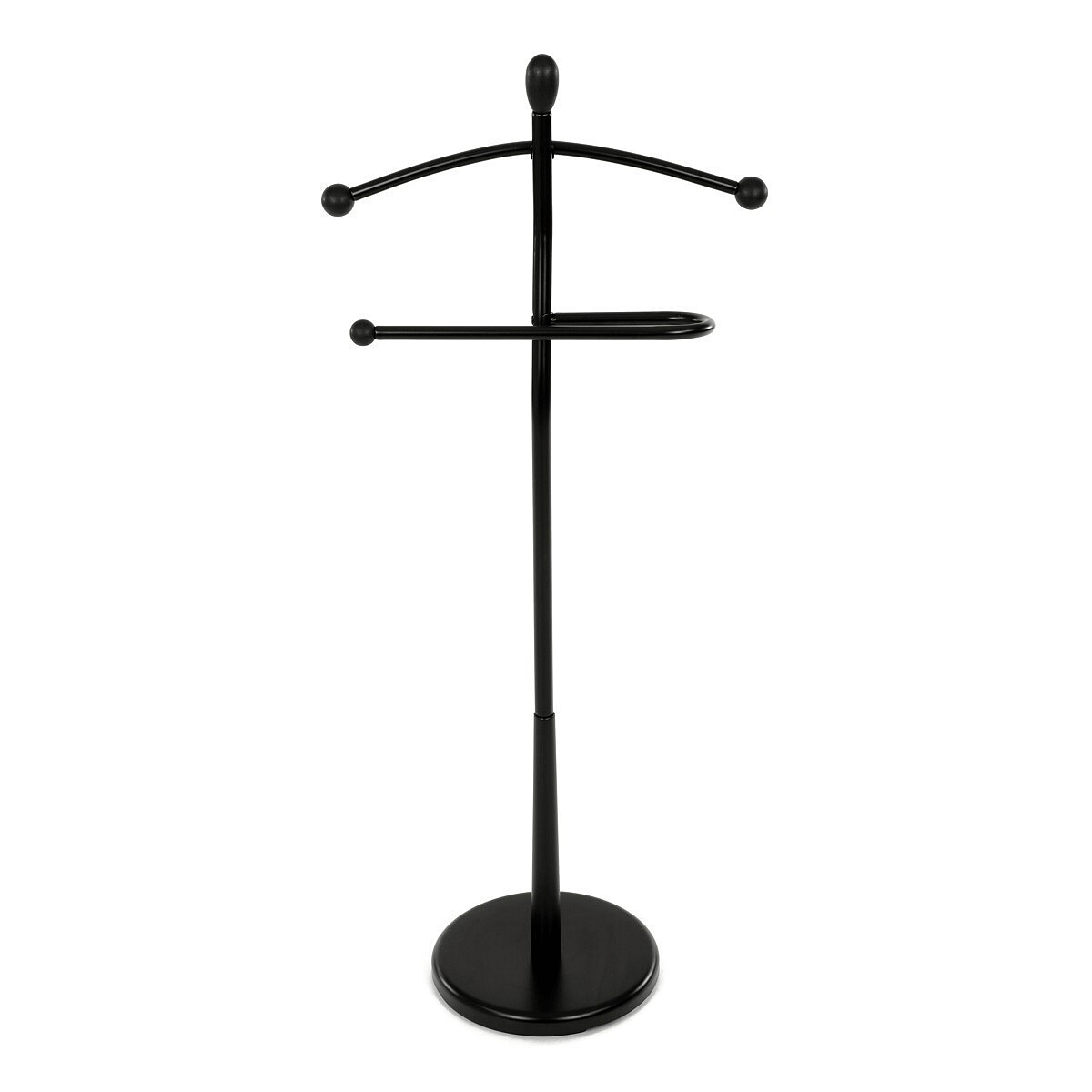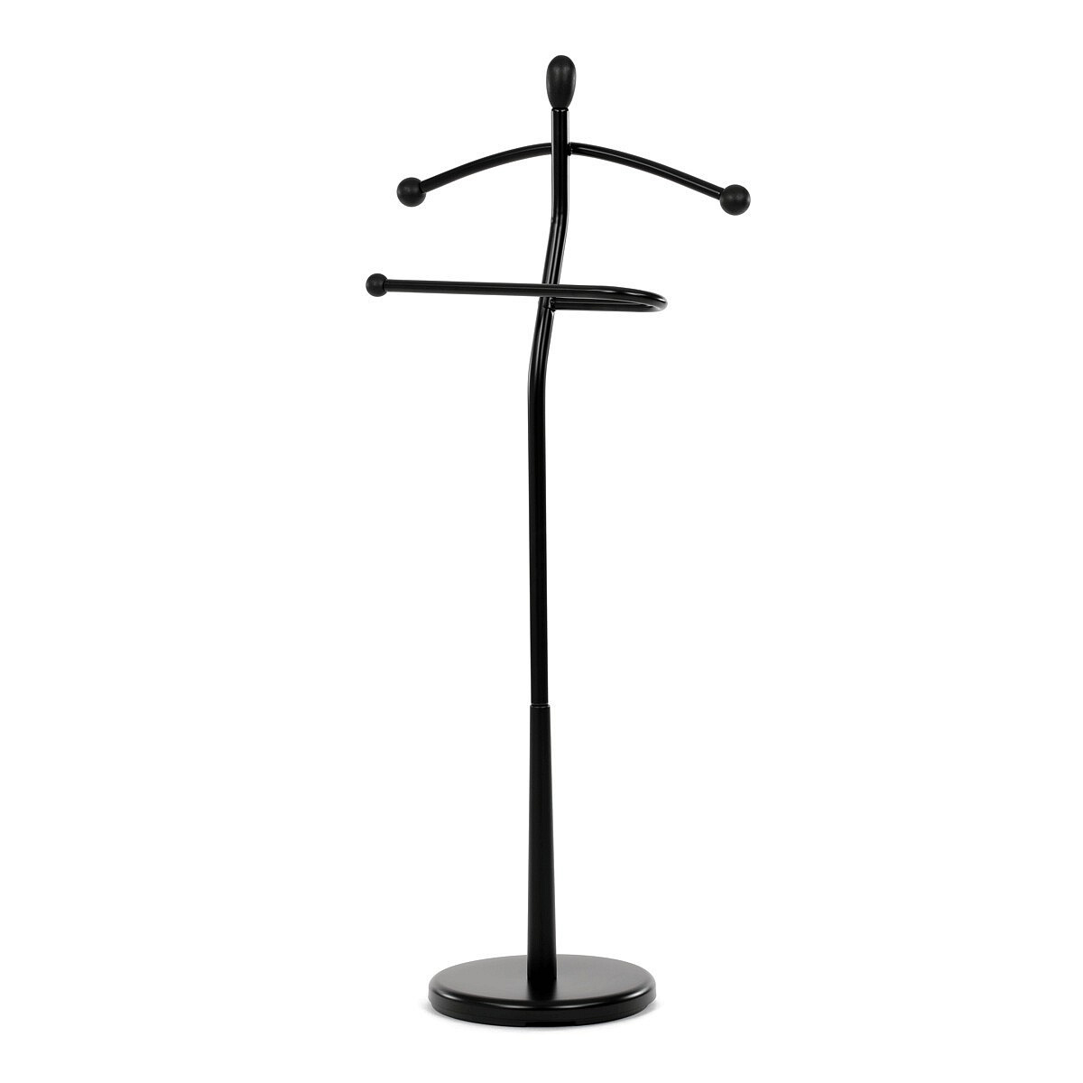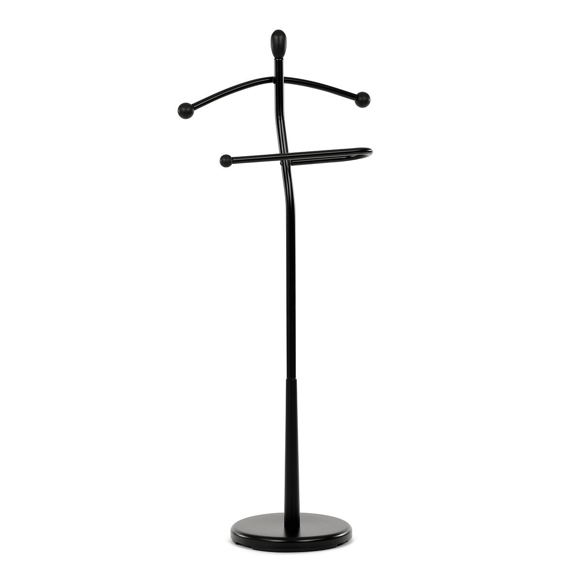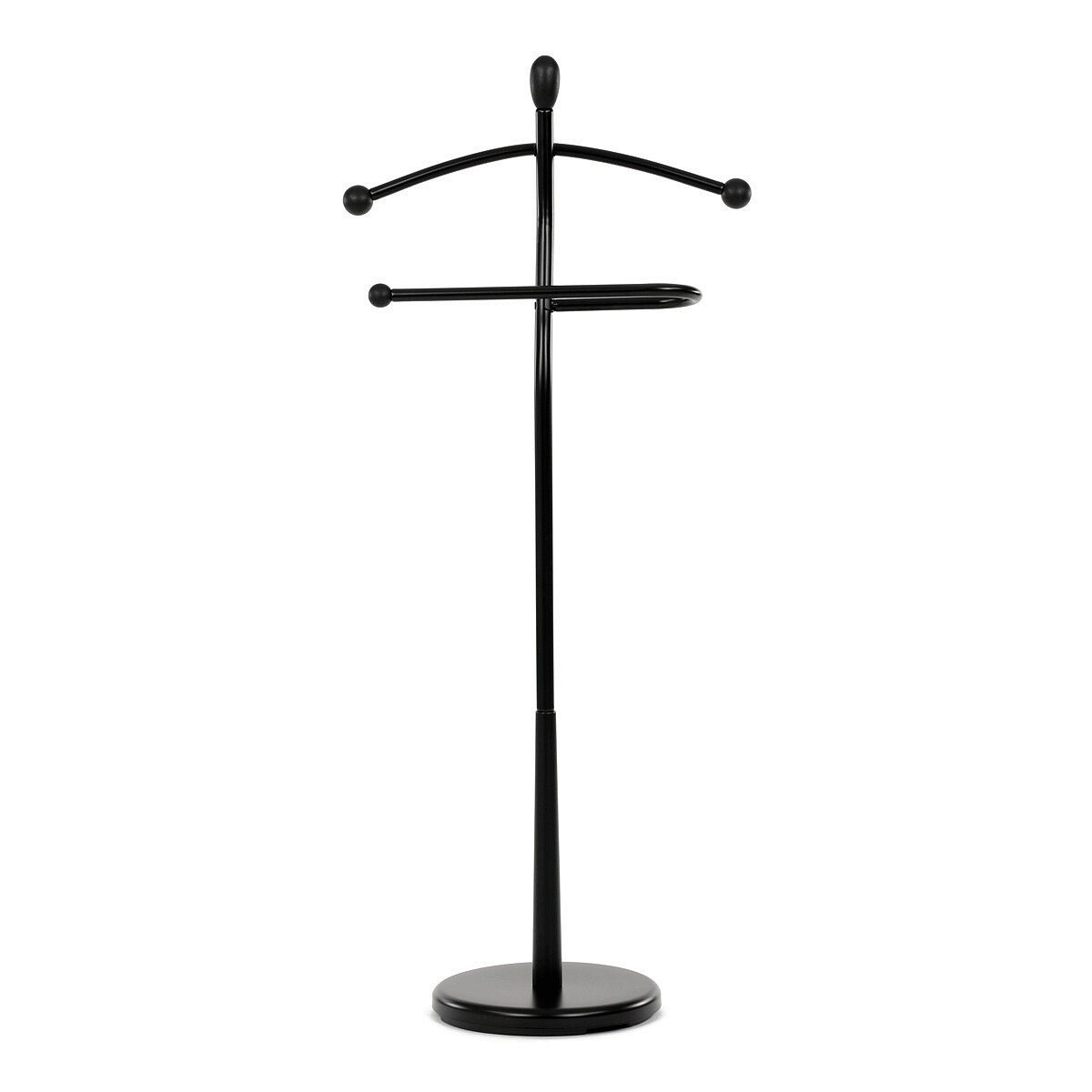 Praktický minimalistický němý sluha v sobě kombinuje prvky z masivního kaučukovníkového dřeva s kovovými nosnými díly v černé povrchové úpravě. Tento model je v celočerném provedení. Výška 120 cm Vám umožní zavěšení oblečení i doplňků zcela bez pomačkání. Nosnost stojanu je až 5 kg rovnoměrně rozprostřené zátěže, hmotnost 5 kg. Konstrukce je zakončena kovovou chromovanou podestou se zátěží v černém plastovém pouzdře. Stojan je jednoduše přenositelný a lze ho umístit podle momentální potřeby i nálady. Stylem a jednoduchostí se hodí do jakéhokoli interiéru. Využití je nepřeberné, záleží jen na Vás.
