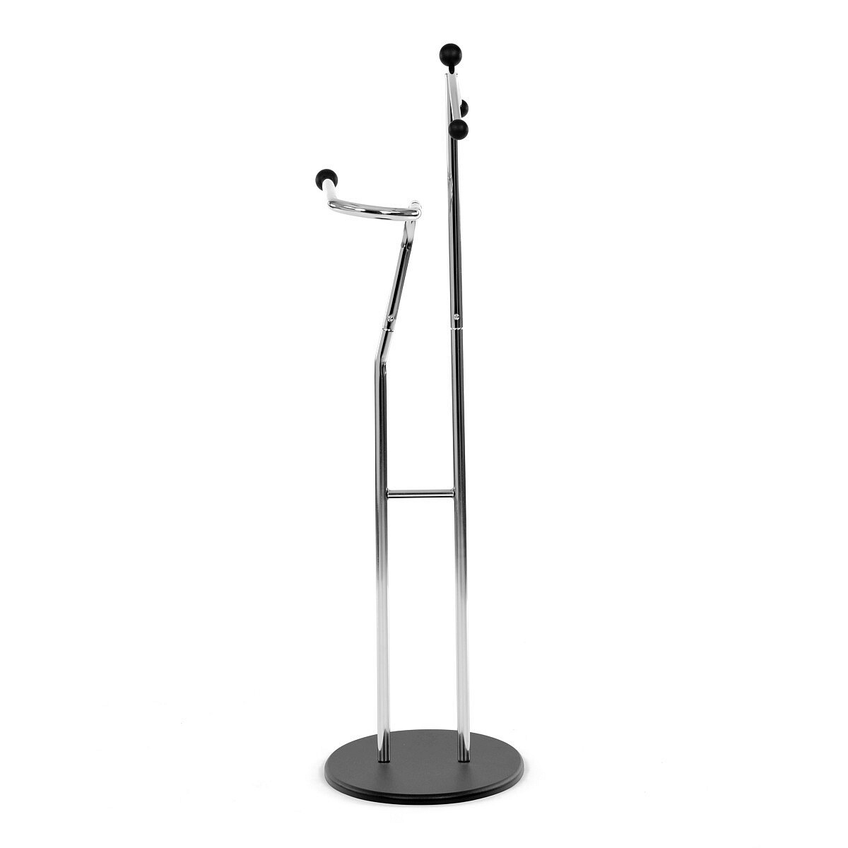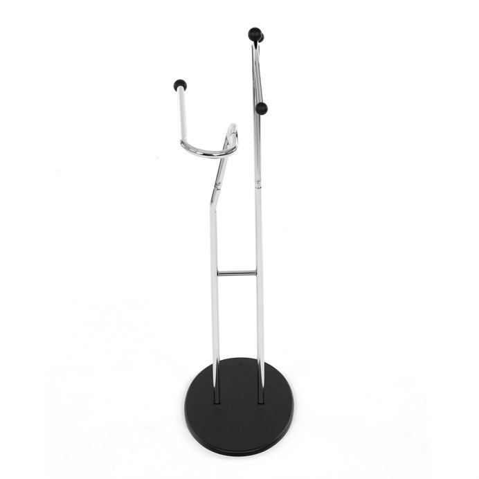 Němý sluha 83213 CR(BK) značky Autronic je praktický bytový doplněk s výškou 110 cm, který kombinuje pevnost kovové konstrukce s elegantním designem. Rám je vyroben z chromovaného kovu, který zajišťuje vysokou odolnost proti opotřebení a stabilitu, zatímco základna je z masivního kaučukovníku s černým mořením, což dodává produktu robustní a zároveň estetický vzhled. Konstrukce nabízí několik ramínek zakončených černými plastovými koncovkami, které umožňují bezpečné zavěšení oděvů, obleků či doplňků bez poškození materiálu. Pevná základna zajišťuje stabilitu i při větším zatížení a díky kompaktním rozměrům je vhodný do ložnic, šaten nebo kanceláří. Povrchová úprava chromu a černého moření podtrhuje moderní styl a snadnou údržbu produktu.