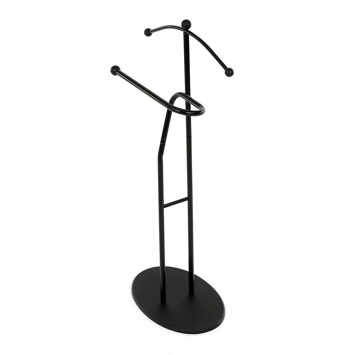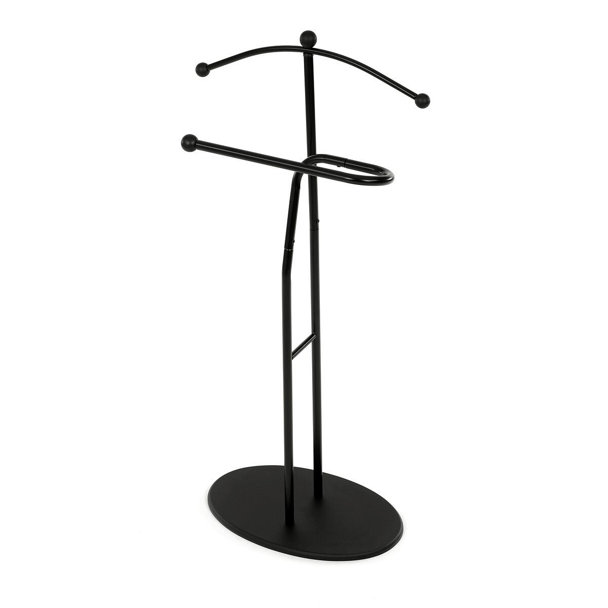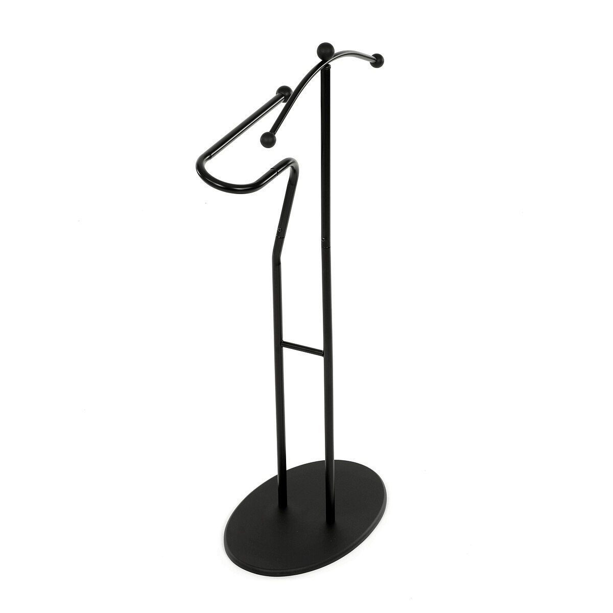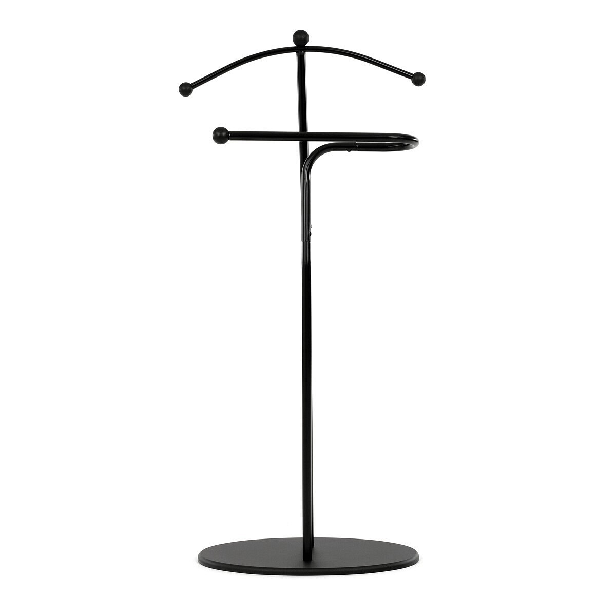 Elegantní němý sluha značky Autronic je praktickým pomocníkem pro každou ložnici nebo šatnu. Minimalistický černý design s kovovou konstrukcí nabízí pevnost, odolnost a dlouhou životnost. Ramínko a praktický držák na kalhoty nebo kravaty udrží vaše oblečení vždy upravené a připravené. Stabilní oválná základna zajišťuje bezpečné postavení a snadno zapadne do moderního i klasického interiéru.