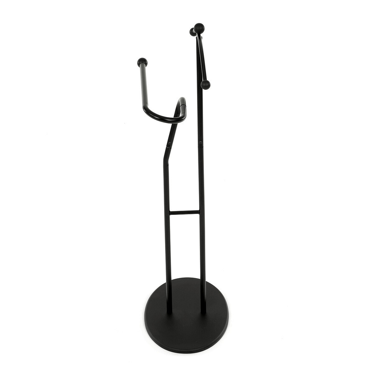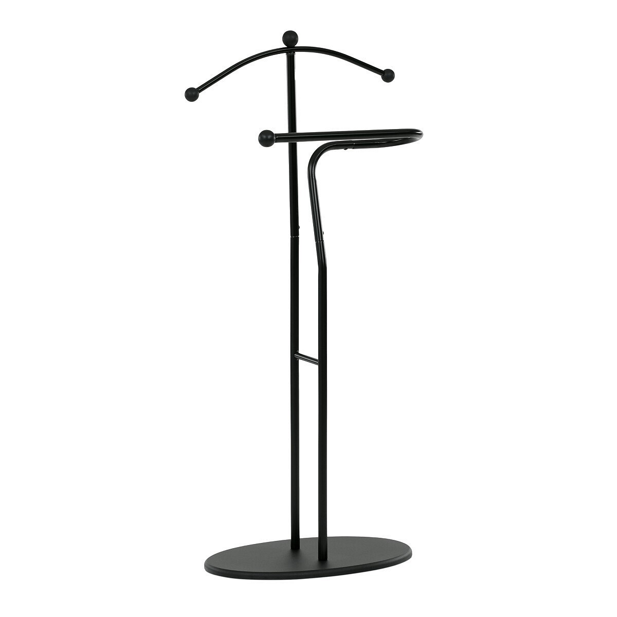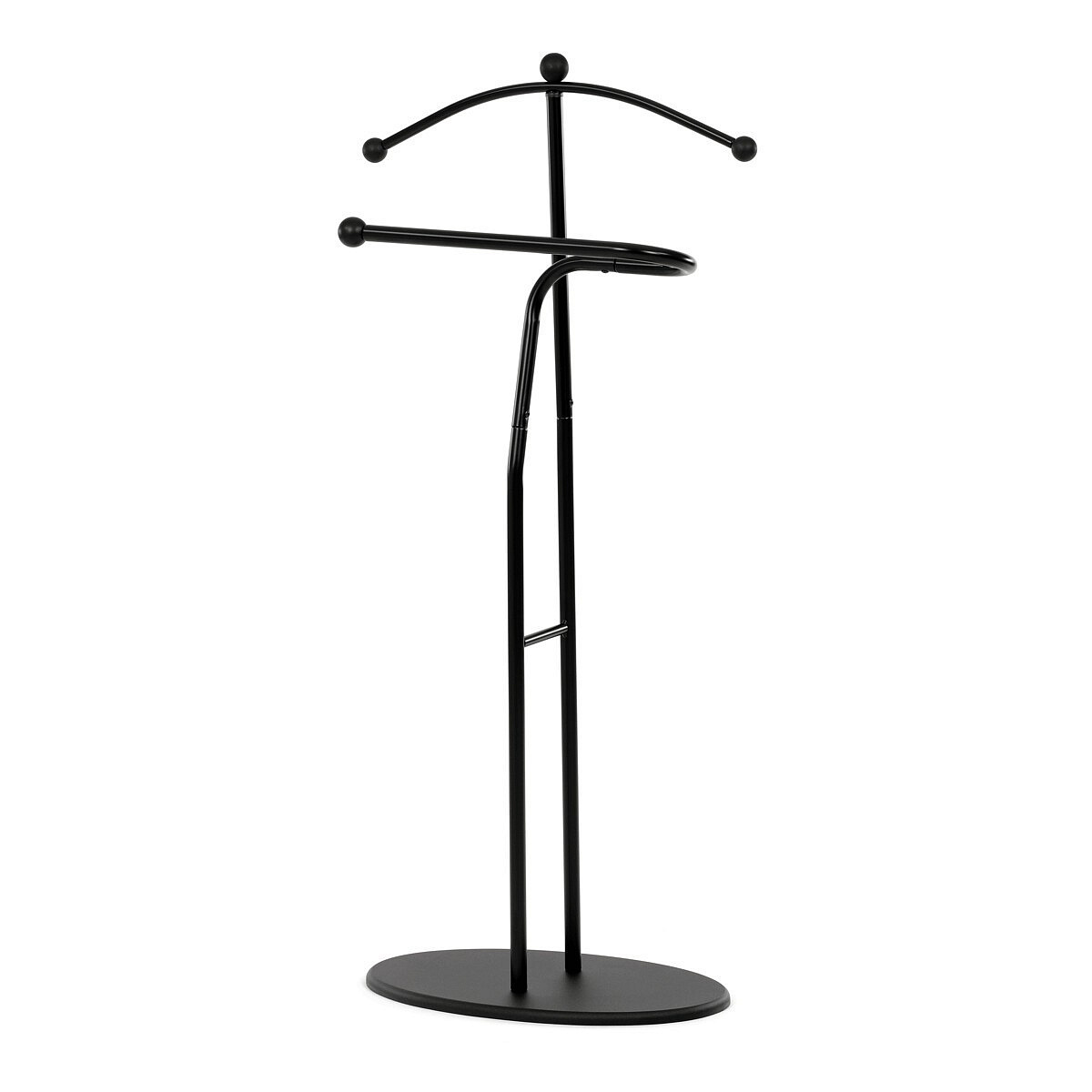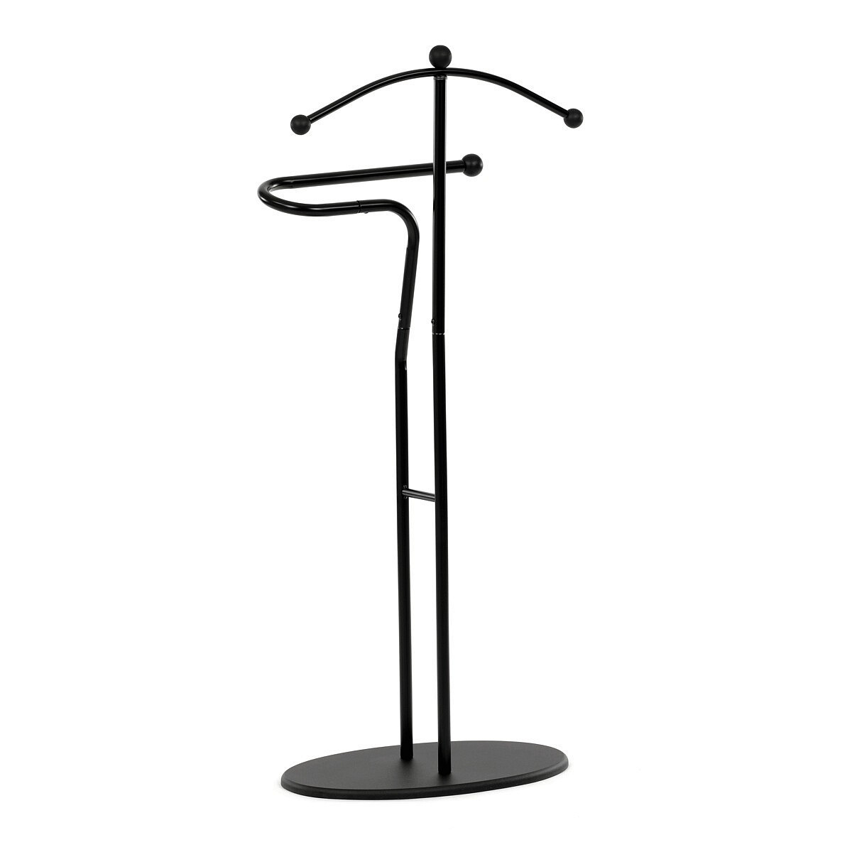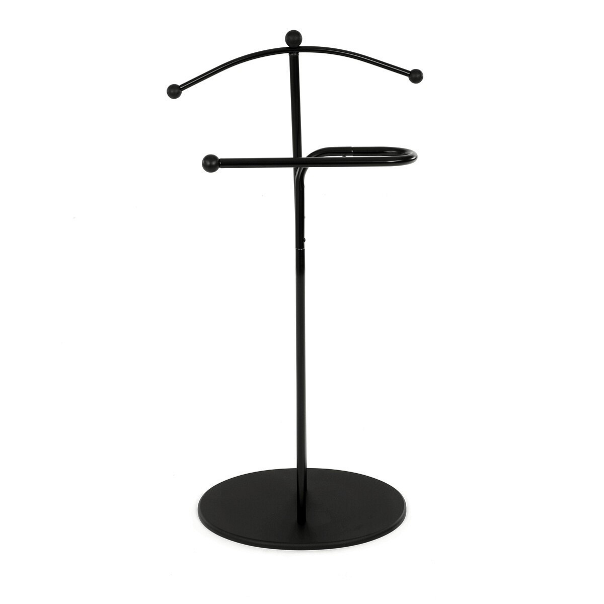 Elegantní němý sluha značky Autronic je praktickým pomocníkem pro každou ložnici nebo šatnu. Minimalistický černý design s kovovou konstrukcí nabízí pevnost, odolnost a dlouhou životnost. Ramínko a praktický držák na kalhoty nebo kravaty udrží vaše oblečení vždy upravené a připravené. Stabilní oválná základna zajišťuje bezpečné postavení a snadno zapadne do moderního i klasického interiéru.