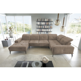 Rohová pohovka Neviro je moderní kus nábytku s důmyslnými prvky, které výrazně usnadňují relaxaci. Zajímavým řešením, kterým je Neviro vybaven, je funkce posuvných opěradel - která vám umožňuje pohodlně si nastavit polohu těla. Chytré, nastavitelné opěrky hlavy a pohodlná opěrka rukou zvyšují komfort. Sedák nábytku je vyroben z vysoce pružné HR pěny a vlnité pružiny, což ještě více zvyšuje pocit pohodlí. Kromě toho Neviro nabízí estetický zážitek díky stylovému prošívání a elegantnímu šití. Dalším charakteristickým rysem rohové pohovky jsou vysoké černé ocelové nohy. Neviro je kus nábytku s rozměry: 350 x 201 x 77 cm.