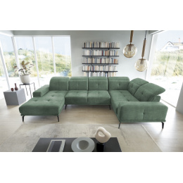 Rohová pohovka Neviro je moderní kus nábytku s důmyslnými prvky, které výrazně usnadňují relaxaci. Zajímavým řešením, kterým je Neviro vybaven, je funkce posuvných opěradel - která vám umožňuje pohodlně si nastavit polohu těla. Chytré, nastavitelné opěrky hlavy a pohodlná opěrka rukou zvyšují komfort. Sedák nábytku je vyroben z vysoce pružné HR pěny a vlnité pružiny, což ještě více zvyšuje pocit pohodlí. Kromě toho Neviro nabízí estetický zážitek díky stylovému prošívání a elegantnímu šití. Dalším charakteristickým rysem rohové pohovky jsou vysoké černé ocelové nohy. Neviro je kus nábytku s rozměry: 350 x 201 x 77 cm.