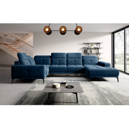 Rohová pohovka Neviro je moderní kus nábytku s důmyslnými prvky, které výrazně usnadňují relaxaci. Zajímavým řešením, kterým je Neviro vybaven, je funkce posuvných opěradel - která vám umožňuje pohodlně si nastavit polohu těla. Chytré, nastavitelné opěrky hlavy a pohodlná opěrka rukou zvyšují komfort. Sedák nábytku je vyroben z vysoce pružné HR pěny a vlnité pružiny, což ještě více zvyšuje pocit pohodlí. Kromě toho Neviro nabízí estetický zážitek díky stylovému prošívání a elegantnímu šití. Dalším charakteristickým rysem rohové pohovky jsou vysoké černé ocelové nohy. Neviro je kus nábytku s rozměry: 350 x 201 x 77 cm.