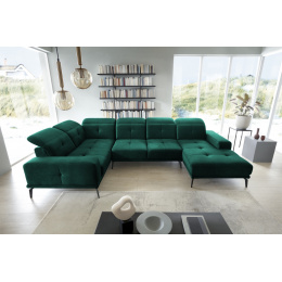 Rohová pohovka Neviro je moderní kus nábytku s důmyslnými prvky, které výrazně usnadňují relaxaci. Zajímavým řešením, kterým je Neviro vybaven, je funkce posuvných opěradel - která vám umožňuje pohodlně si nastavit polohu těla. Chytré, nastavitelné opěrky hlavy a pohodlná opěrka rukou zvyšují komfort. Sedák nábytku je vyroben z vysoce pružné HR pěny a vlnité pružiny, což ještě více zvyšuje pocit pohodlí. Kromě toho Neviro nabízí estetický zážitek díky stylovému prošívání a elegantnímu šití. Dalším charakteristickým rysem rohové pohovky jsou vysoké černé ocelové nohy. Neviro je kus nábytku s rozměry: 350 x 201 x 77 cm.
