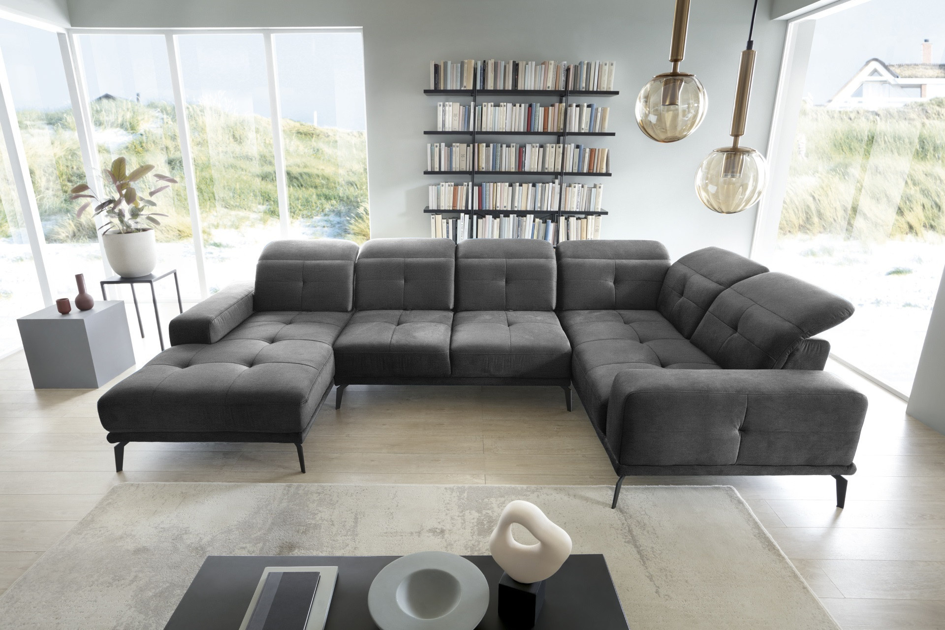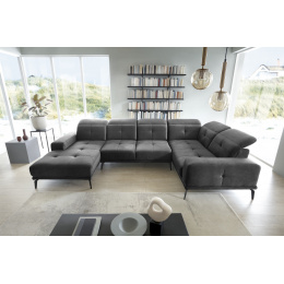Rohová pohovka Neviro je moderní kus nábytku s důmyslnými prvky, které výrazně usnadňují relaxaci. Zajímavým řešením, kterým je Neviro vybaven, je funkce posuvných opěradel - která vám umožňuje pohodlně si nastavit polohu těla. Chytré, nastavitelné opěrky hlavy a pohodlná opěrka rukou zvyšují komfort. Sedák nábytku je vyroben z vysoce pružné HR pěny a vlnité pružiny, což ještě více zvyšuje pocit pohodlí. Kromě toho Neviro nabízí estetický zážitek díky stylovému prošívání a elegantnímu šití. Dalším charakteristickým rysem rohové pohovky jsou vysoké černé ocelové nohy. Neviro je kus nábytku s rozměry: 350 x 201 x 77 cm.